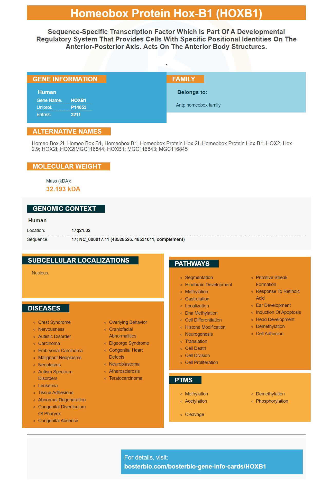 homeo box 2I; homeo box B1; homeobox B1; Homeobox protein Hox-2I; homeobox protein Hox-B1; HOX2; Hox-2.9; HOX2I; HOX2IMGC116844; HOXB1; MGC116843; MGC116845