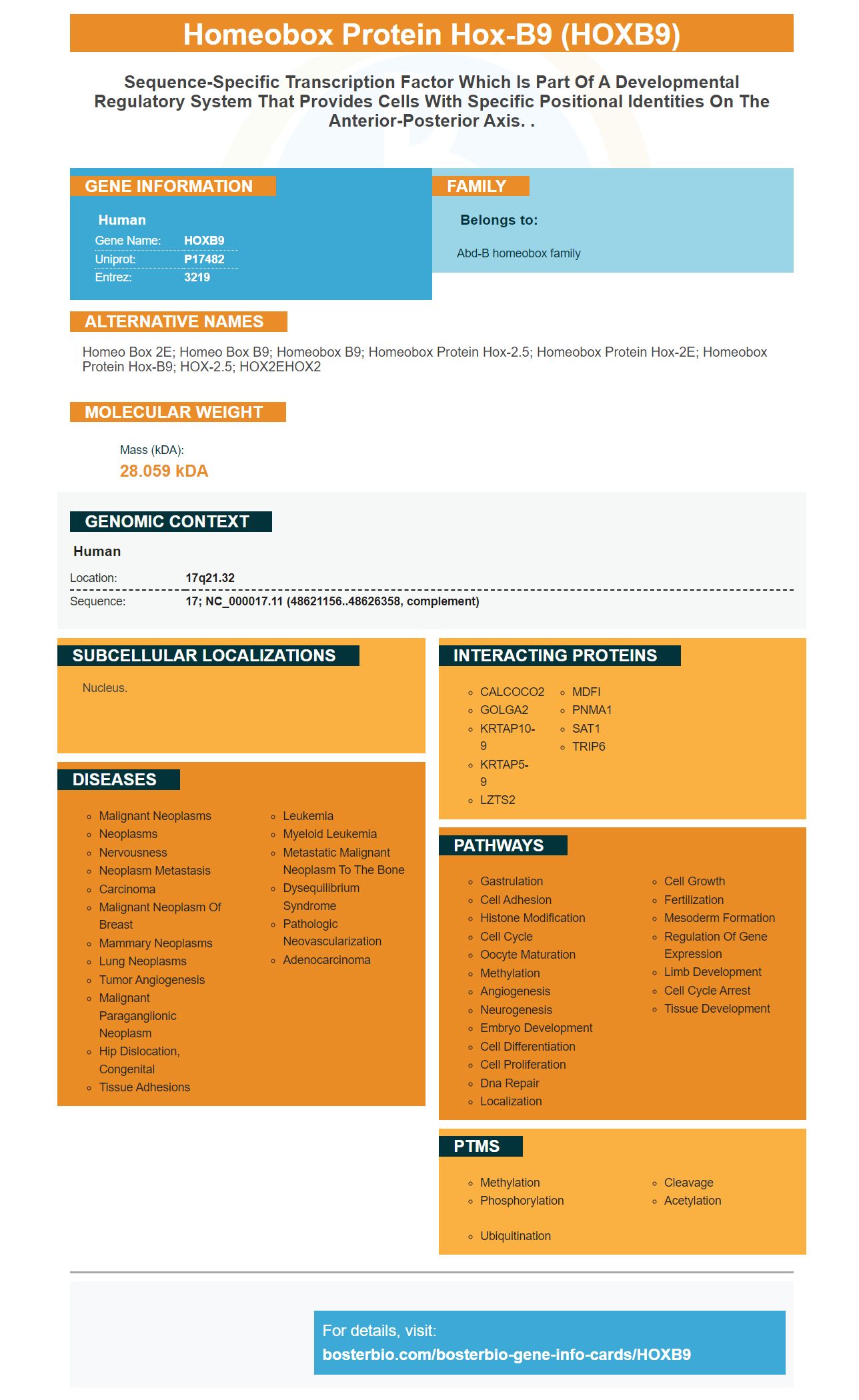 homeo box 2E; homeo box B9; homeobox B9; Homeobox protein Hox-2.5; Homeobox protein Hox-2E; homeobox protein Hox-B9; HOX-2.5; HOX2EHOX2