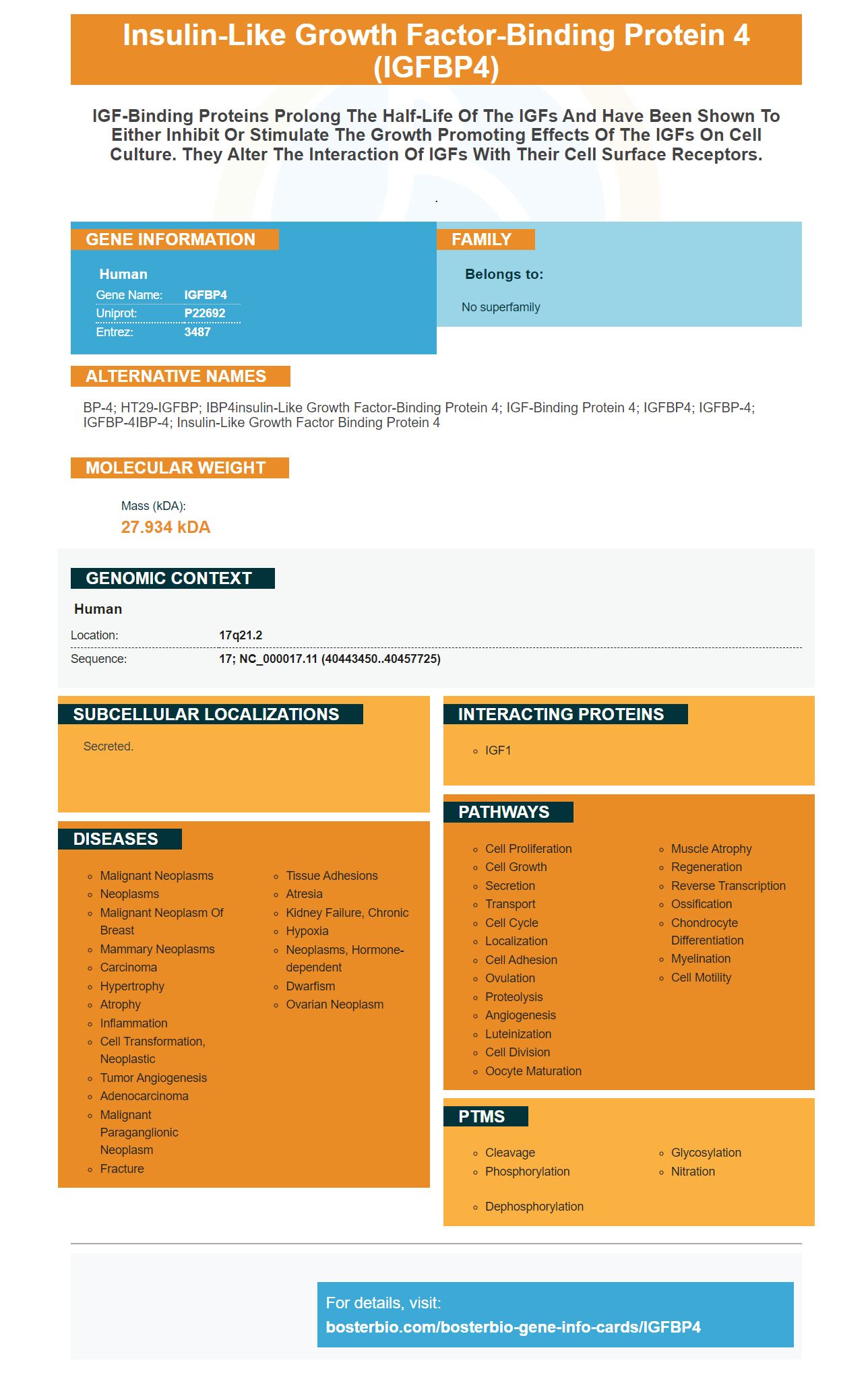 BP-4; HT29-IGFBP; IBP4insulin-like growth factor-binding protein 4; IGF-binding protein 4; IGFBP4; IGFBP-4; IGFBP-4IBP-4; insulin-like growth factor binding protein 4