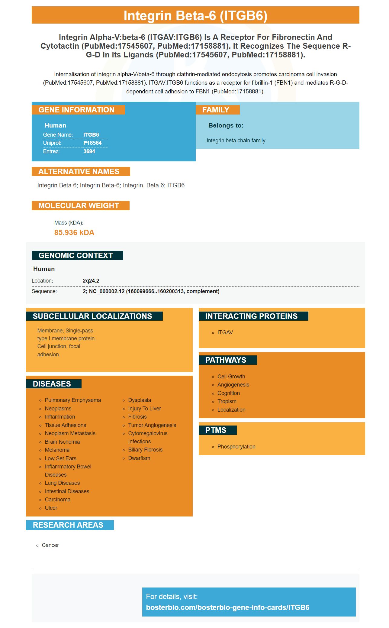 Integrin beta 6; integrin beta-6; integrin, beta 6; ITGB6