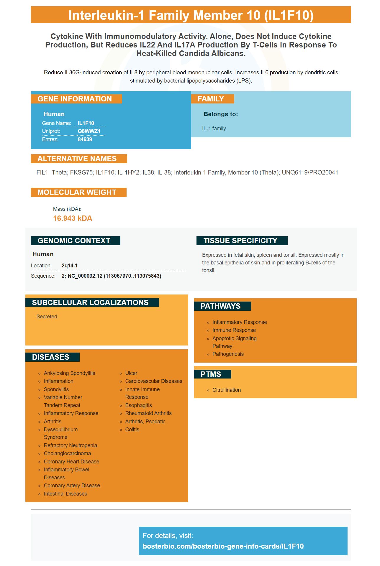 FIL1- theta; FKSG75; IL1F10; IL-1HY2; IL38; IL-38; interleukin 1 family, member 10 (theta); UNQ6119/PRO20041