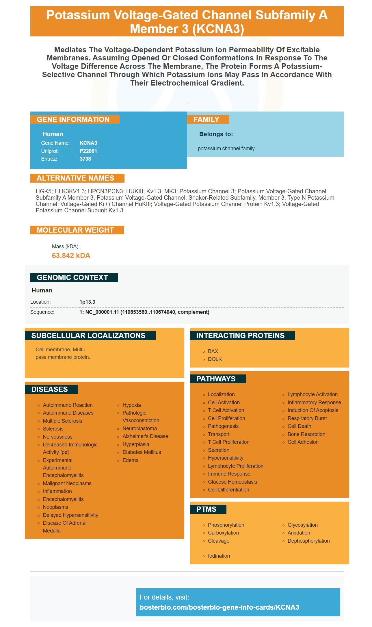 HGK5; HLK3KV1.3; HPCN3PCN3; HUKIII; Kv1.3; MK3; potassium channel 3; potassium voltage-gated channel subfamily A member 3; potassium voltage-gated channel, shaker-related subfamily, member 3; type n potassium channel; Voltage-gated K(+) channel HuKIII; voltage-gated potassium channel protein Kv1.3; Voltage-gated potassium channel subunit Kv1.3