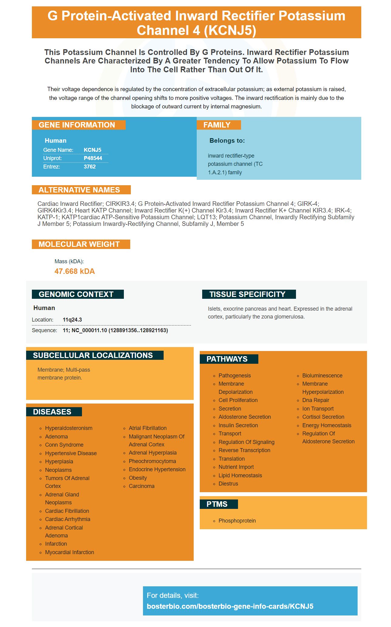 Cardiac inward rectifier; CIRKIR3.4; G protein-activated inward rectifier potassium channel 4; GIRK-4; GIRK4Kir3.4; Heart KATP channel; Inward rectifier K(+) channel Kir3.4; inward rectifier K+ channel KIR3.4; IRK-4; KATP-1; KATP1cardiac ATP-sensitive potassium channel; LQT13; Potassium channel, inwardly rectifying subfamily J member 5; potassium inwardly-rectifying channel, subfamily J, member 5