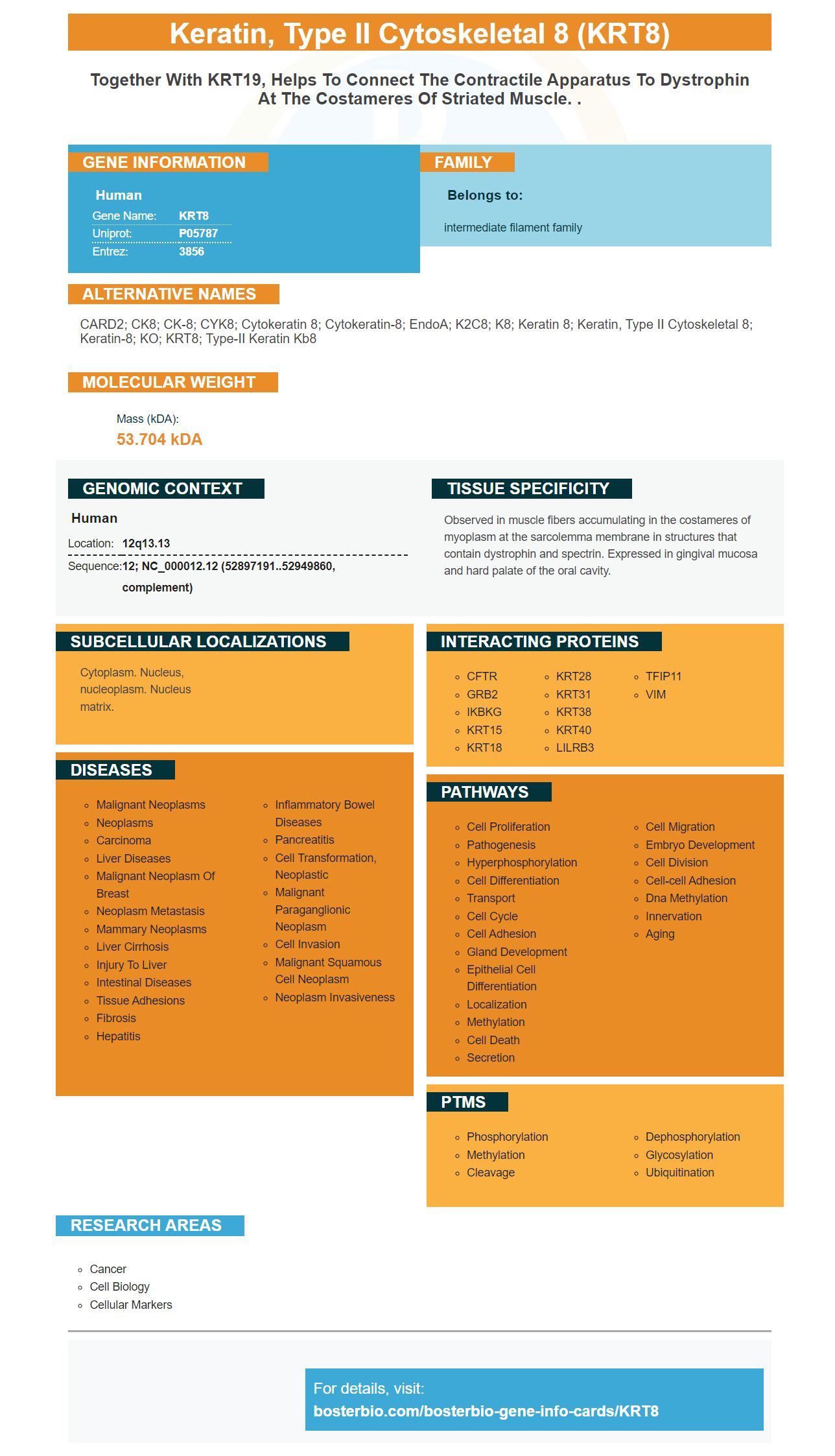 CARD2; CK8; CK-8; CYK8; Cytokeratin 8; Cytokeratin-8; EndoA; K2C8; K8; keratin 8; keratin, type II cytoskeletal 8; keratin-8; KO; KRT8; Type-II keratin Kb8