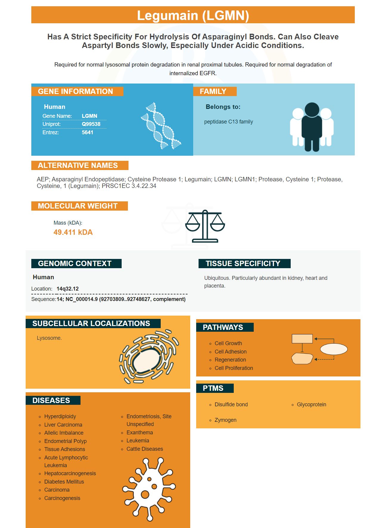 AEP; Asparaginyl Endopeptidase; cysteine protease 1; Legumain; LGMN; LGMN1; Protease, cysteine 1; protease, cysteine, 1 (legumain); PRSC1EC 3.4.22.34