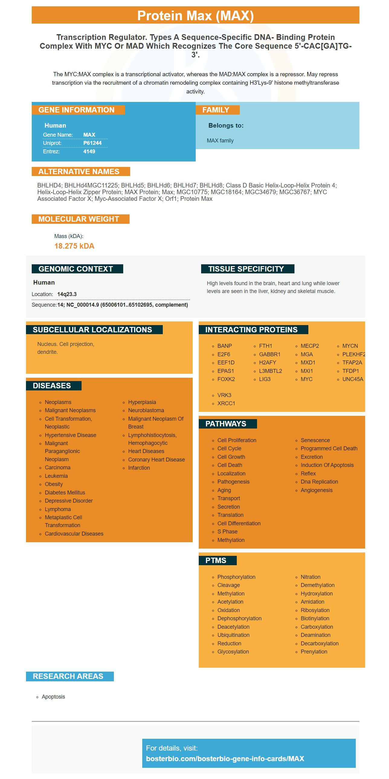 BHLHD4; bHLHd4MGC11225; bHLHd5; bHLHd6; bHLHd7; bHLHd8; Class D basic helix-loop-helix protein 4; helix-loop-helix zipper protein; MAX protein; Max; MGC10775; MGC18164; MGC34679; MGC36767; MYC associated factor X; Myc-associated factor X; orf1; protein max