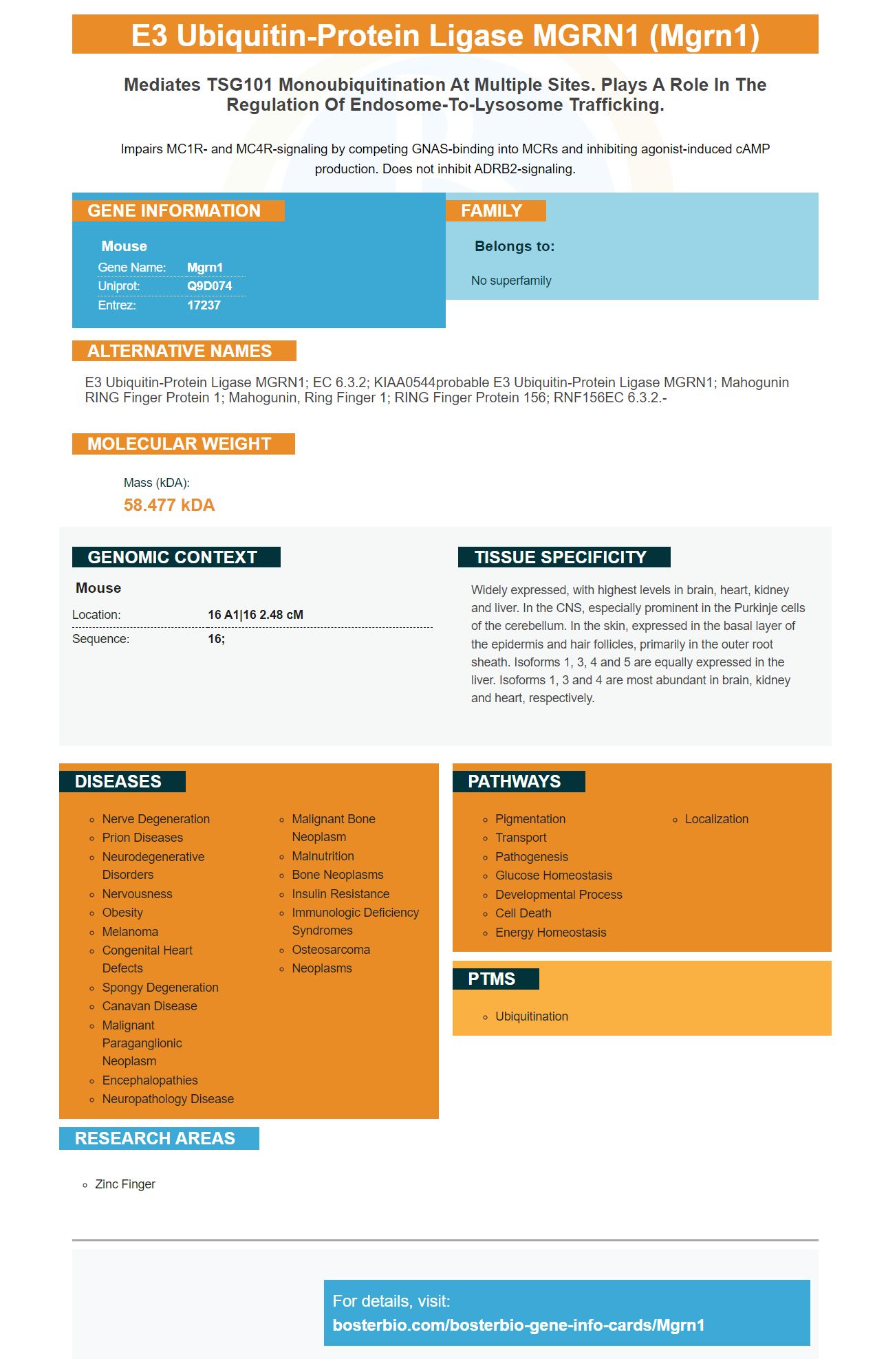 Facts about E3 ubiquitin-protein ligase MGRN1.