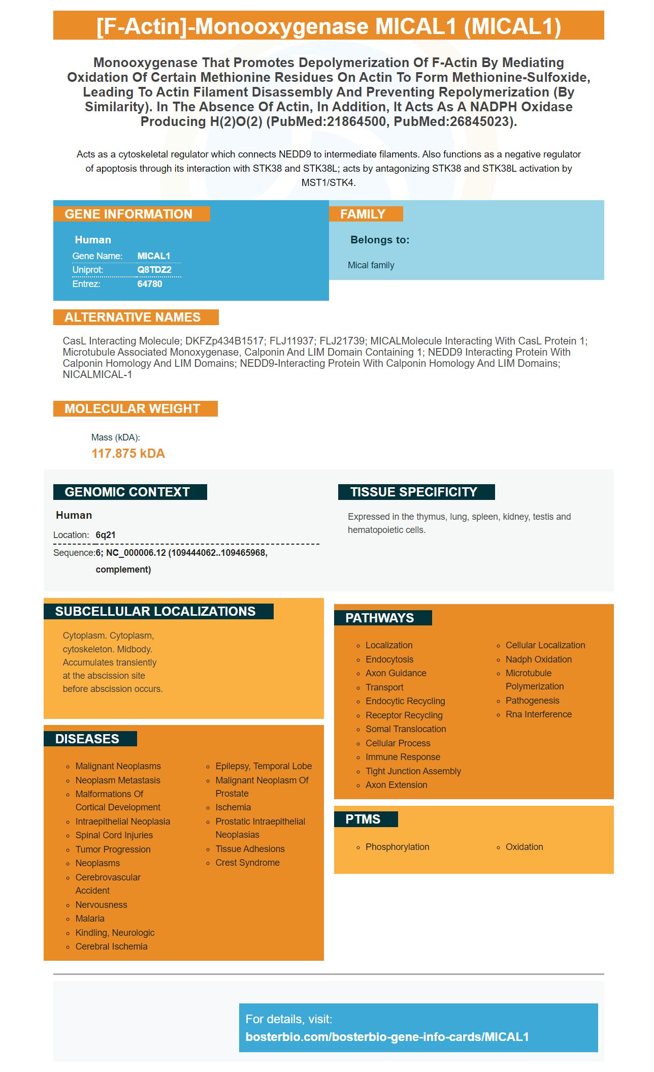 CasL interacting molecule; DKFZp434B1517; FLJ11937; FLJ21739; MICALMolecule interacting with CasL protein 1; microtubule associated monoxygenase, calponin and LIM domain containing 1; NEDD9 interacting protein with calponin homology and LIM domains; NEDD9-interacting protein with calponin homology and LIM domains; NICALMICAL-1