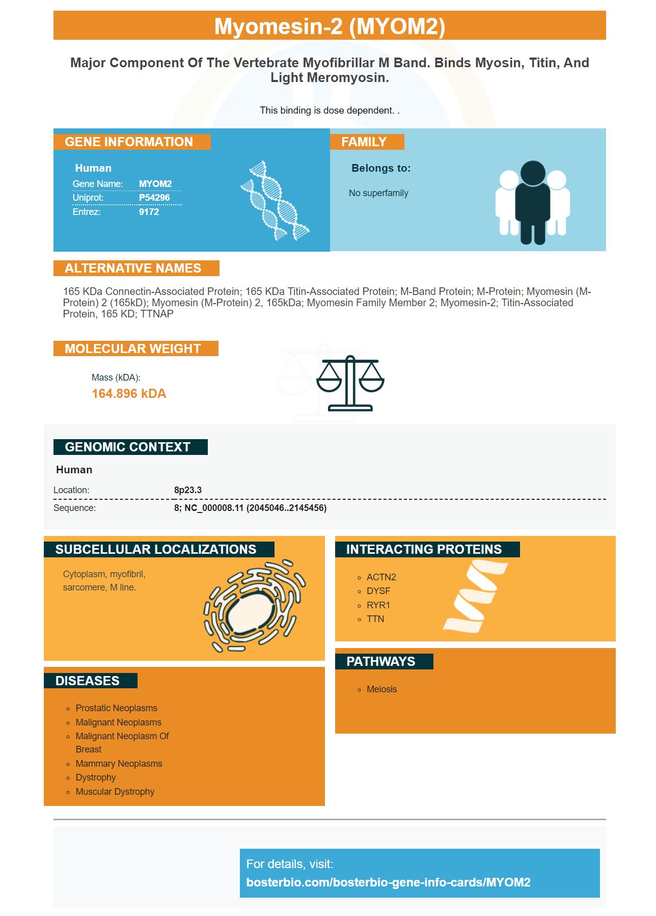 165 kDa connectin-associated protein; 165 kDa titin-associated protein; M-band protein; M-protein; myomesin (M-protein) 2 (165kD); myomesin (M-protein) 2, 165kDa; Myomesin family member 2; myomesin-2; titin-associated protein, 165 kD; TTNAP