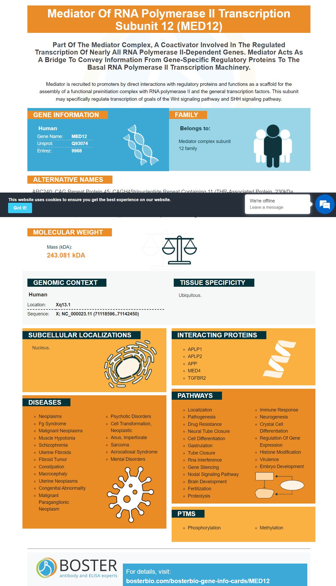 Facts about Mediator of RNA polymerase II transcription subunit 12.