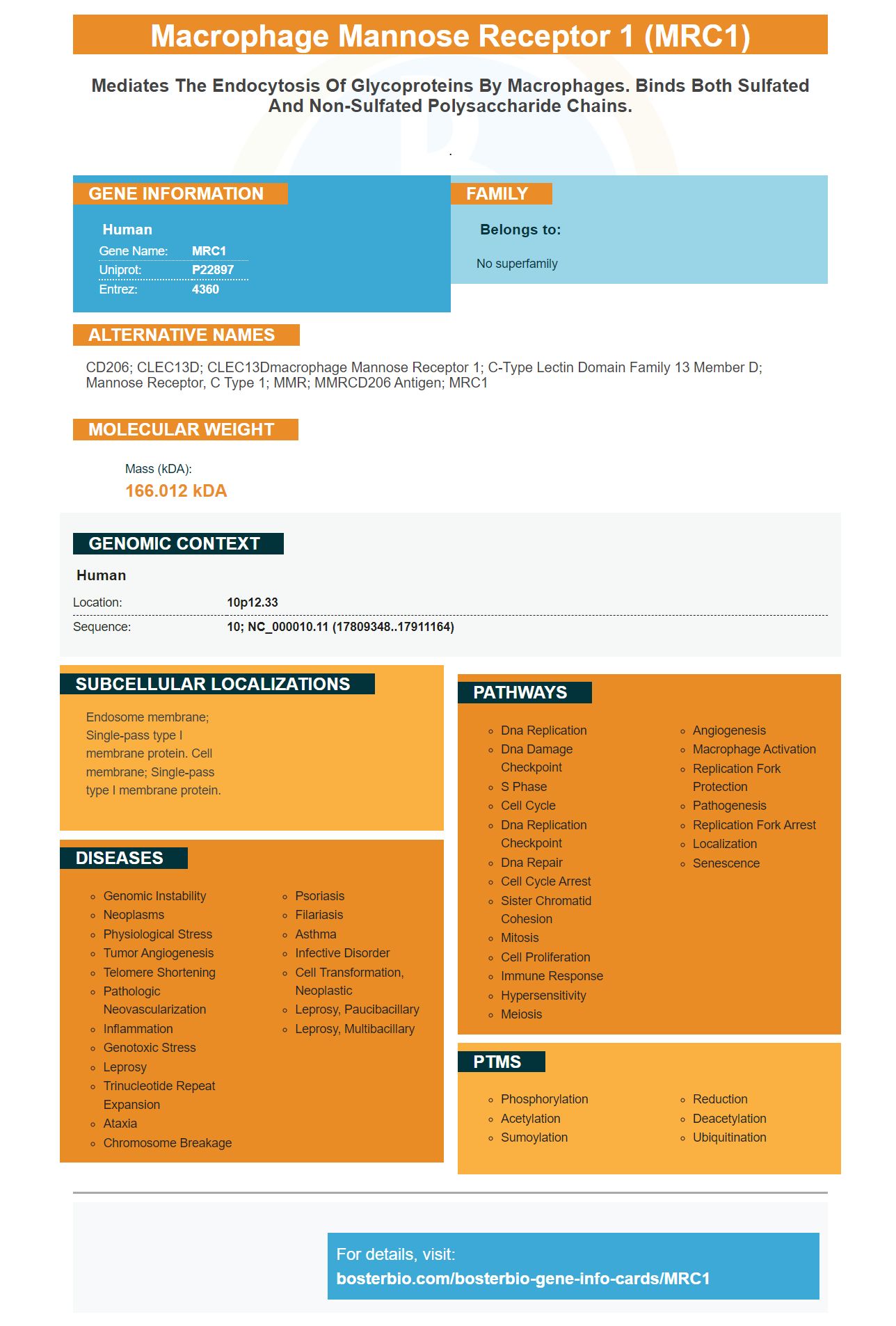 CD206; CLEC13D; CLEC13Dmacrophage mannose receptor 1; C-type lectin domain family 13 member D; mannose receptor, C type 1; MMR; MMRCD206 antigen; MRC1