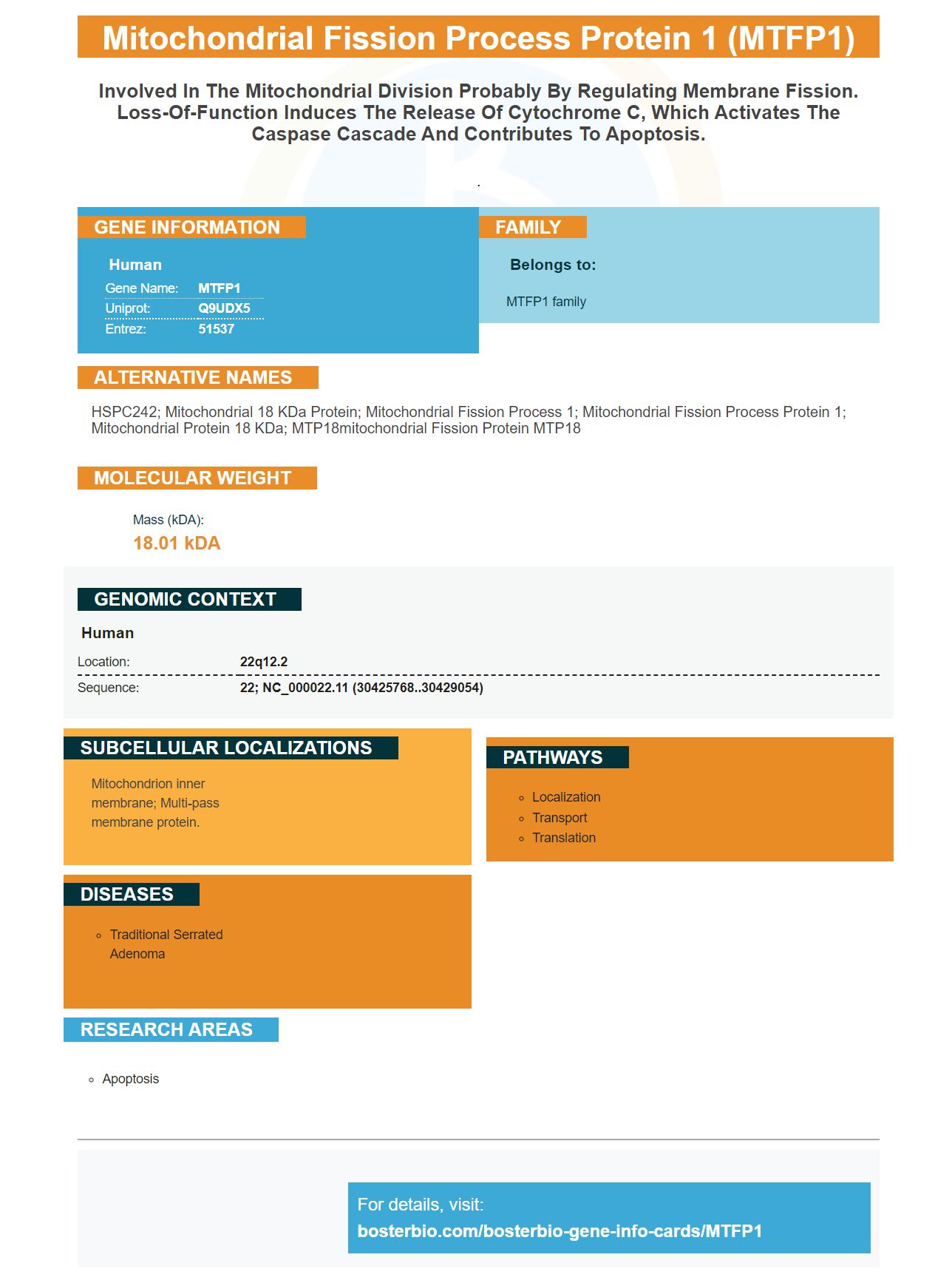 HSPC242; Mitochondrial 18 kDa protein; mitochondrial fission process 1; mitochondrial fission process protein 1; mitochondrial protein 18 kDa; MTP18mitochondrial fission protein MTP18