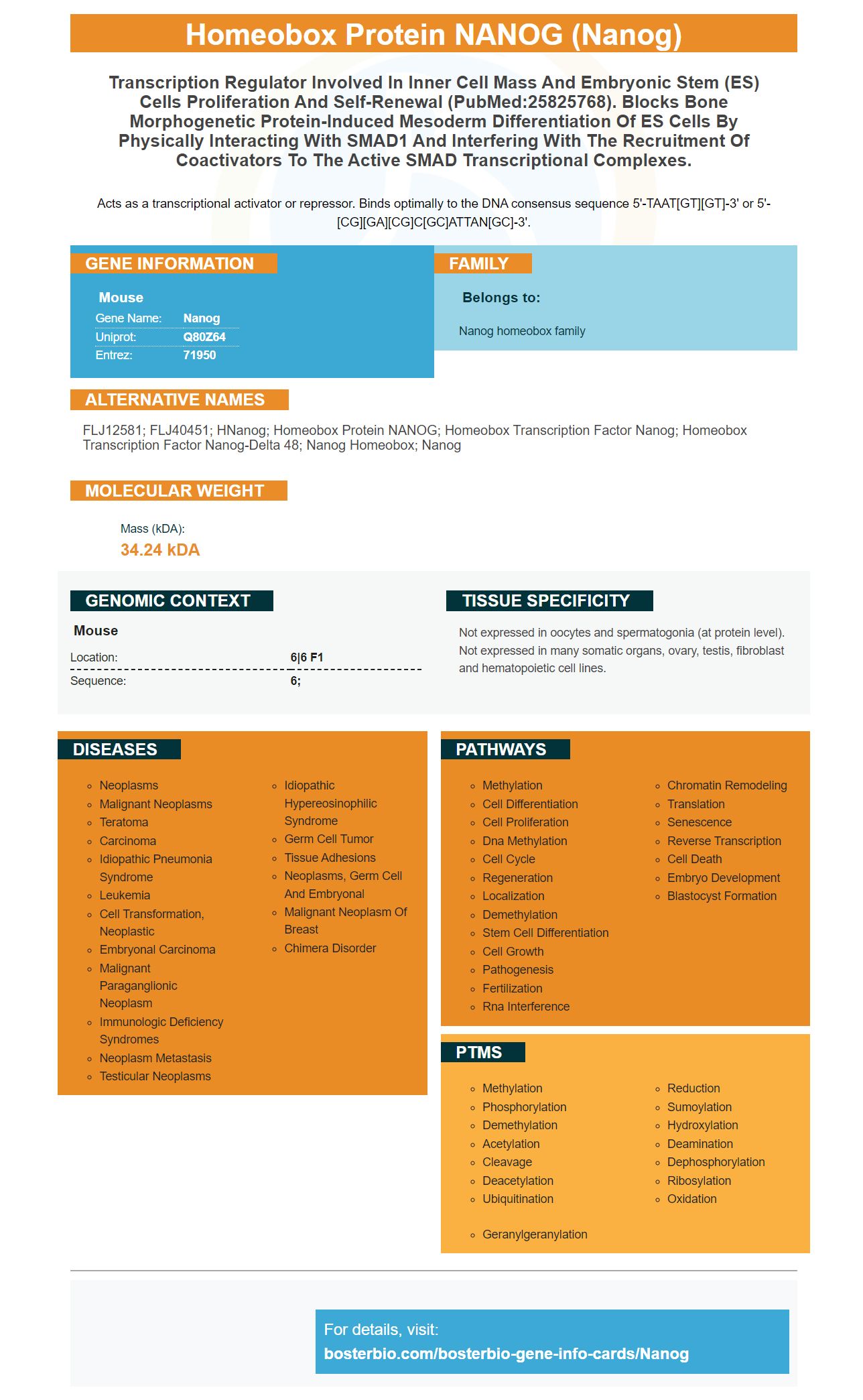 FLJ12581; FLJ40451; hNanog; homeobox protein NANOG; Homeobox transcription factor Nanog; homeobox transcription factor Nanog-delta 48; Nanog homeobox; Nanog