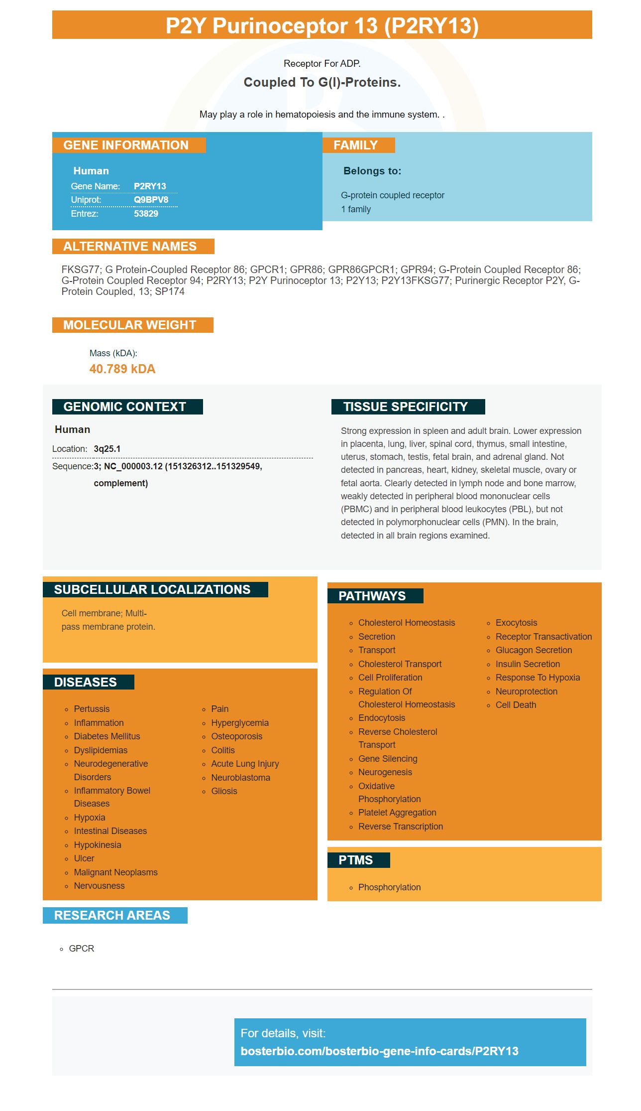 FKSG77; G protein-coupled receptor 86; GPCR1; GPR86; GPR86GPCR1; GPR94; G-protein coupled receptor 86; G-protein coupled receptor 94; P2RY13; P2Y purinoceptor 13; P2Y13; P2Y13FKSG77; purinergic receptor P2Y, G-protein coupled, 13; SP174
