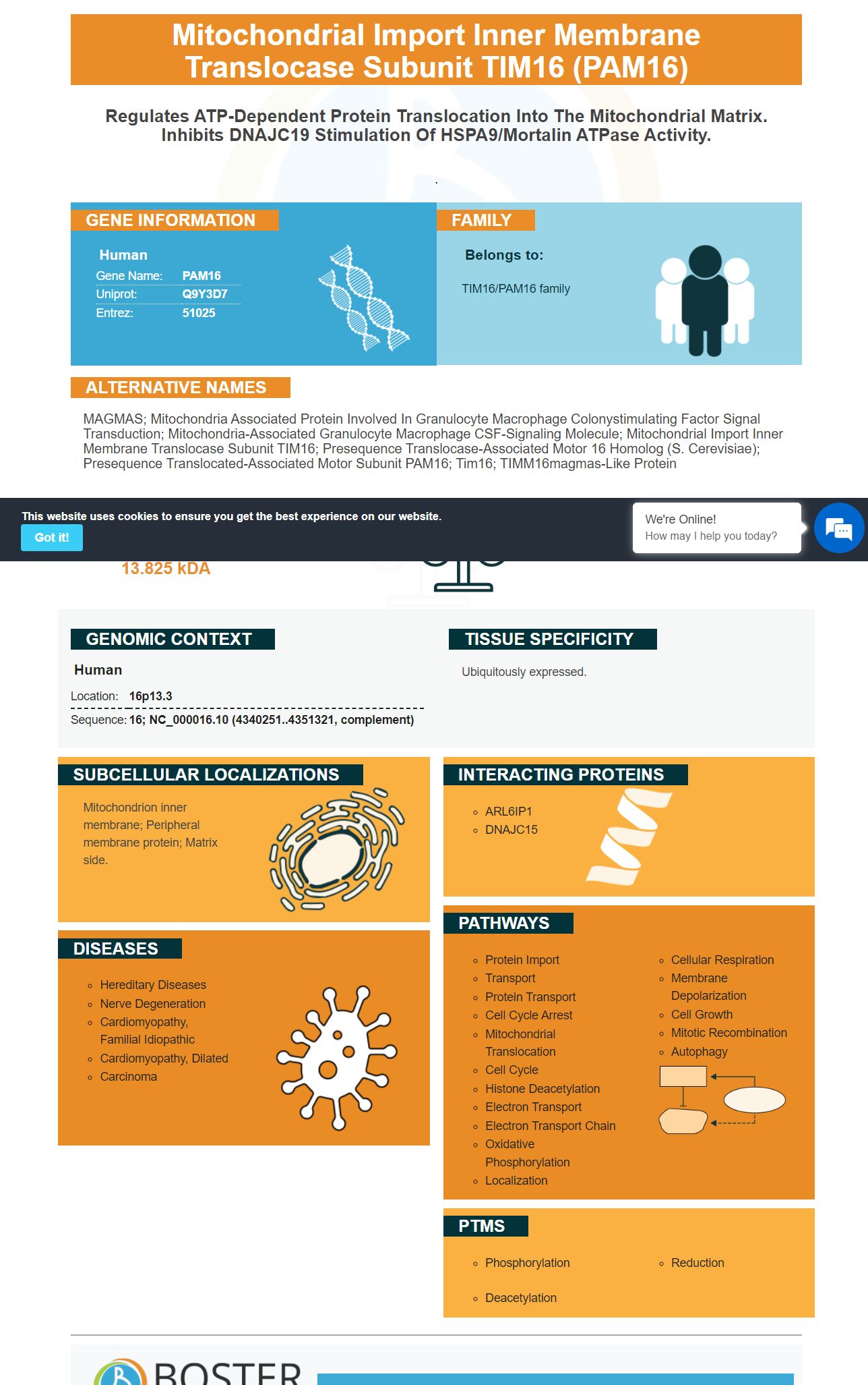 MAGMAS; mitochondria associated protein involved in granulocyte macrophage colonystimulating factor signal transduction; Mitochondria-associated granulocyte macrophage CSF-signaling molecule; mitochondrial import inner membrane translocase subunit TIM16; presequence translocase-associated motor 16 homolog (S. cerevisiae); Presequence translocated-associated motor subunit PAM16; Tim16; TIMM16magmas-like protein
