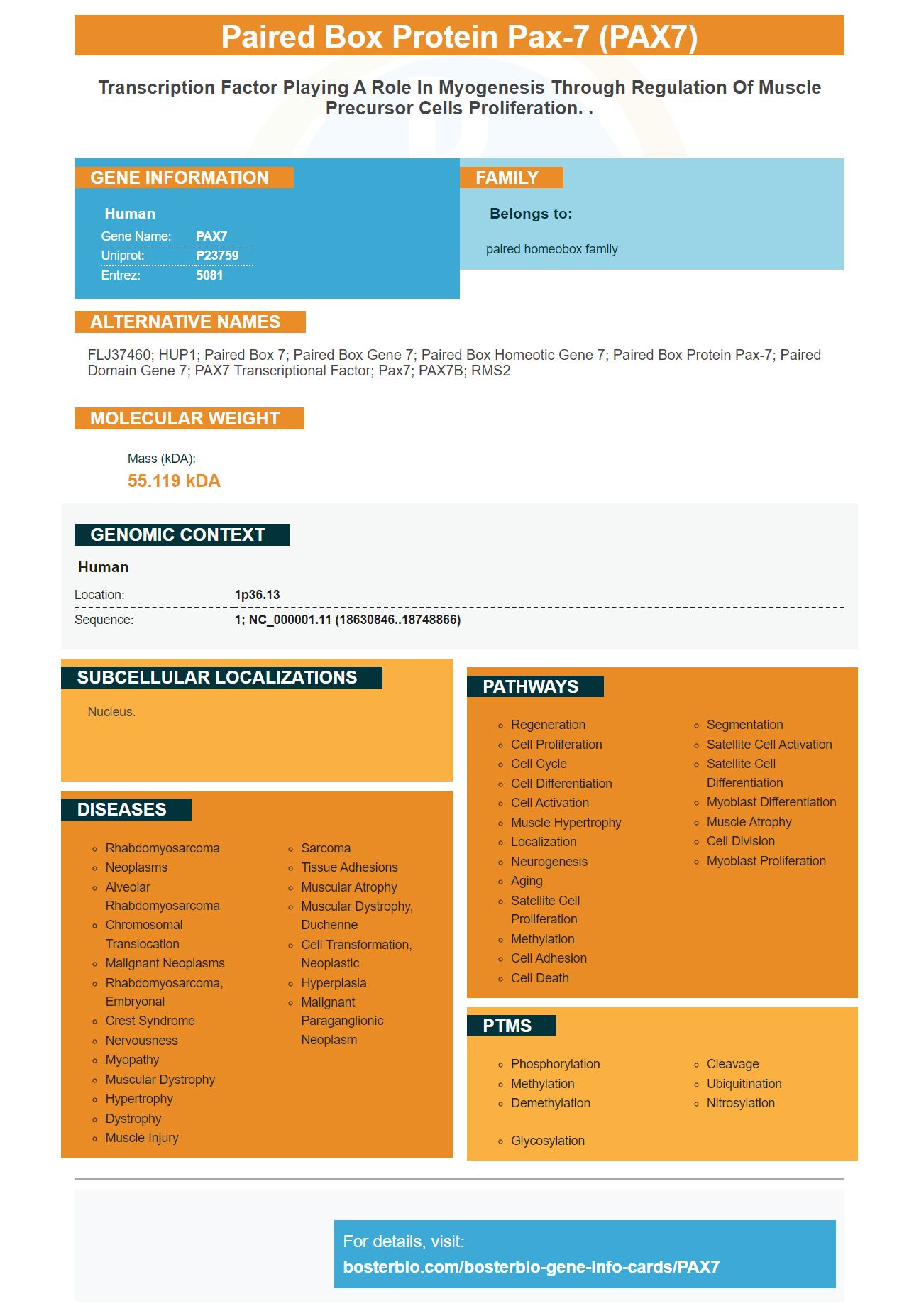 FLJ37460; HUP1; paired box 7; paired box gene 7; paired box homeotic gene 7; paired box protein Pax-7; paired domain gene 7; PAX7 transcriptional factor; Pax7; PAX7B; RMS2