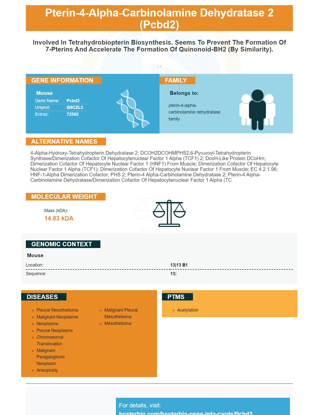 4-alpha-hydroxy-tetrahydropterin dehydratase 2; DCOH2DCOHMPHS2,6-pyruvoyl-tetrahydropterin synthase/dimerization cofactor of hepatocytenuclear factor 1 alpha (TCF1) 2; DcoH-like protein DCoHm; dimerization cofactor of hepatocyte nuclear factor 1 (HNF1) from muscle; dimerization cofactor of hepatocyte nuclear factor 1 alpha (TCF1); Dimerization cofactor of hepatocyte nuclear factor 1 from muscle; EC 4.2.1.96; HNF-1-alpha dimerization cofactor; PHS 2; pterin-4 alpha-carbinolamine dehydratase 2; pterin-4 alpha-carbinolamine dehydratase/dimerization cofactor of hepatocytenuclear factor 1 alpha (TC