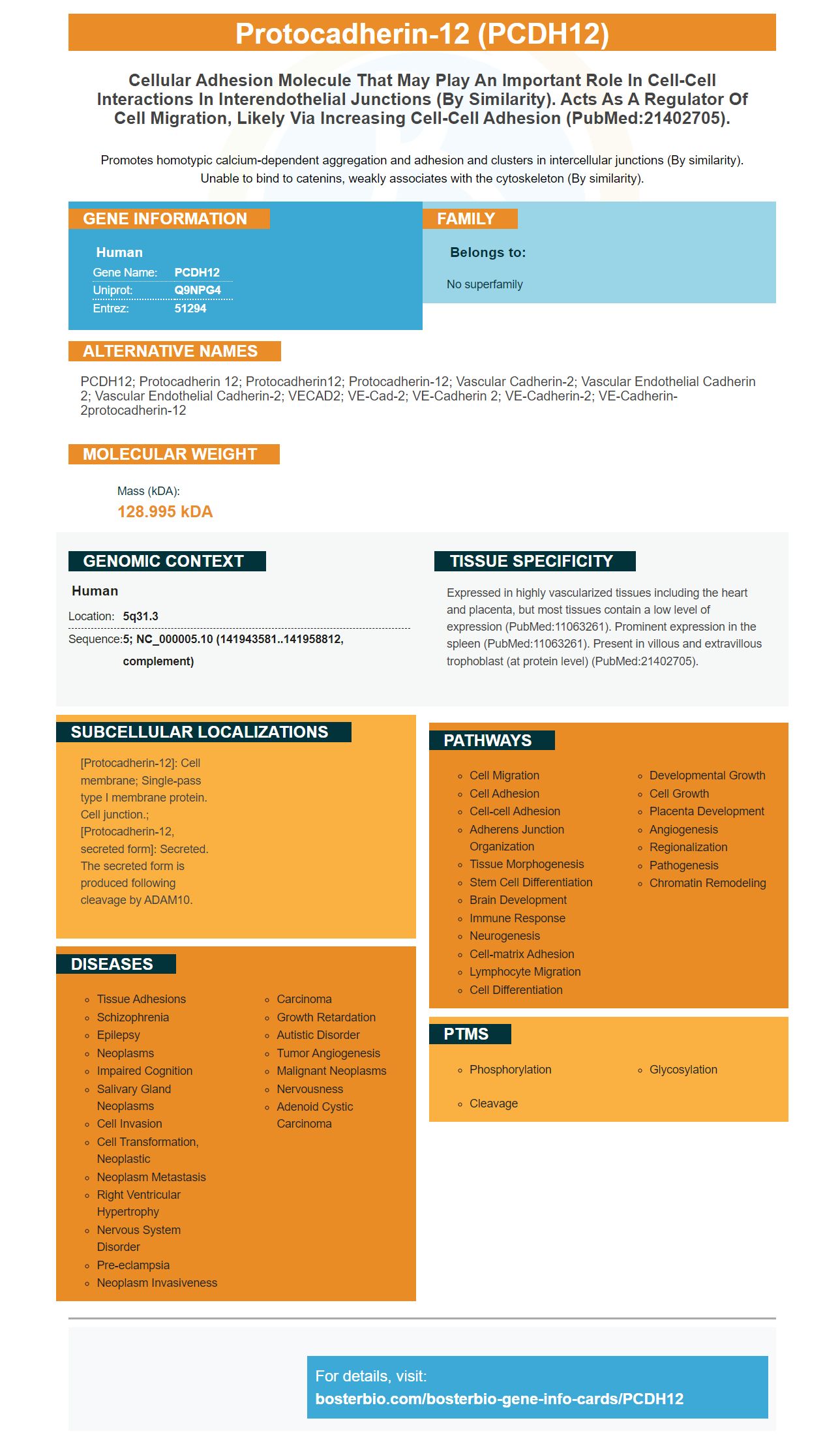 PCDH12; protocadherin 12; Protocadherin12; Protocadherin-12; Vascular cadherin-2; vascular endothelial cadherin 2; Vascular endothelial cadherin-2; VECAD2; VE-cad-2; VE-cadherin 2; VE-cadherin-2; VE-cadherin-2protocadherin-12