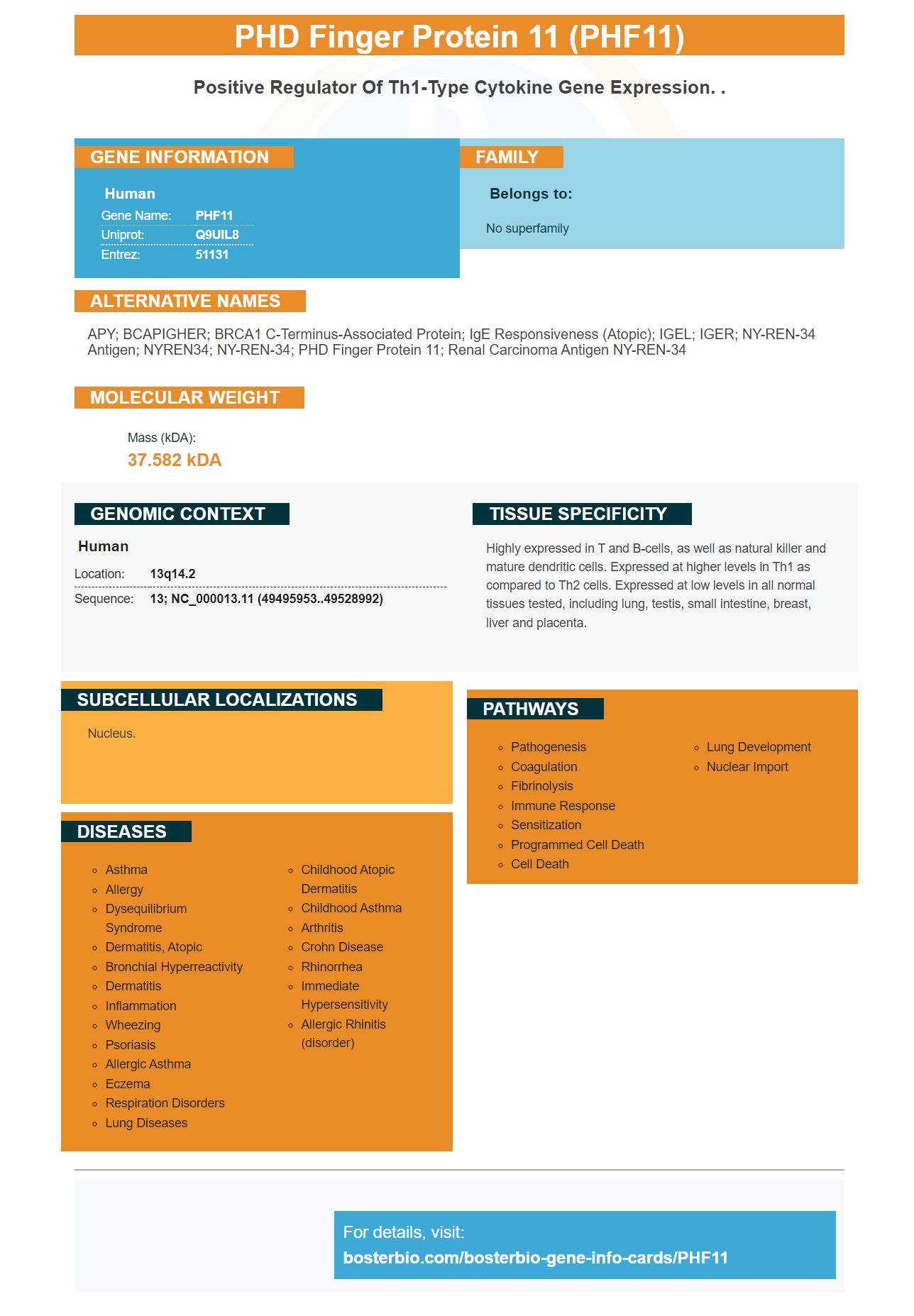 PMID: 15674390 by Jang N., et al. Polymorphisms within the PHF11 gene at chromosome 13q14 are associated with childhood atopic dermatitis.