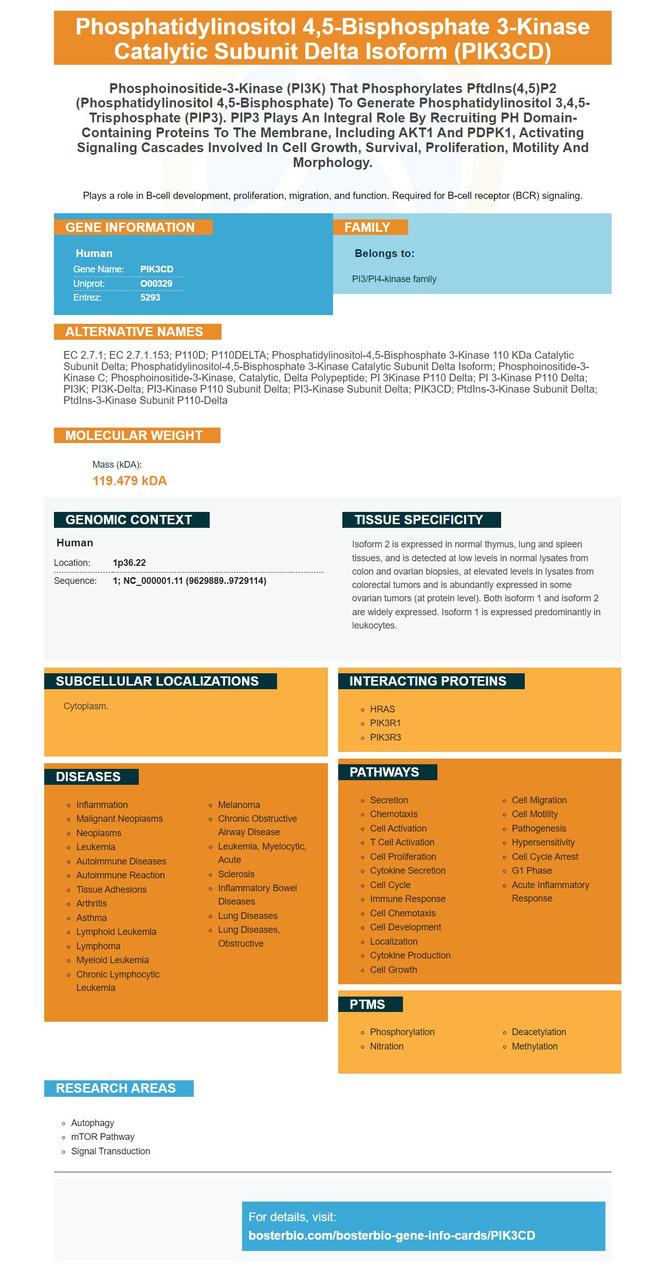 EC 2.7.1; EC 2.7.1.153; p110D; P110DELTA; Phosphatidylinositol-4,5-bisphosphate 3-kinase 110 kDa catalytic subunit delta; phosphatidylinositol-4,5-bisphosphate 3-kinase catalytic subunit delta isoform; phosphoinositide-3-kinase C; phosphoinositide-3-kinase, catalytic, delta polypeptide; PI 3Kinase p110 delta; PI 3-Kinase p110 delta; PI3K; PI3K-delta; PI3-kinase p110 subunit delta; PI3-kinase subunit delta; PIK3CD; PtdIns-3-kinase subunit delta; PtdIns-3-kinase subunit p110-delta