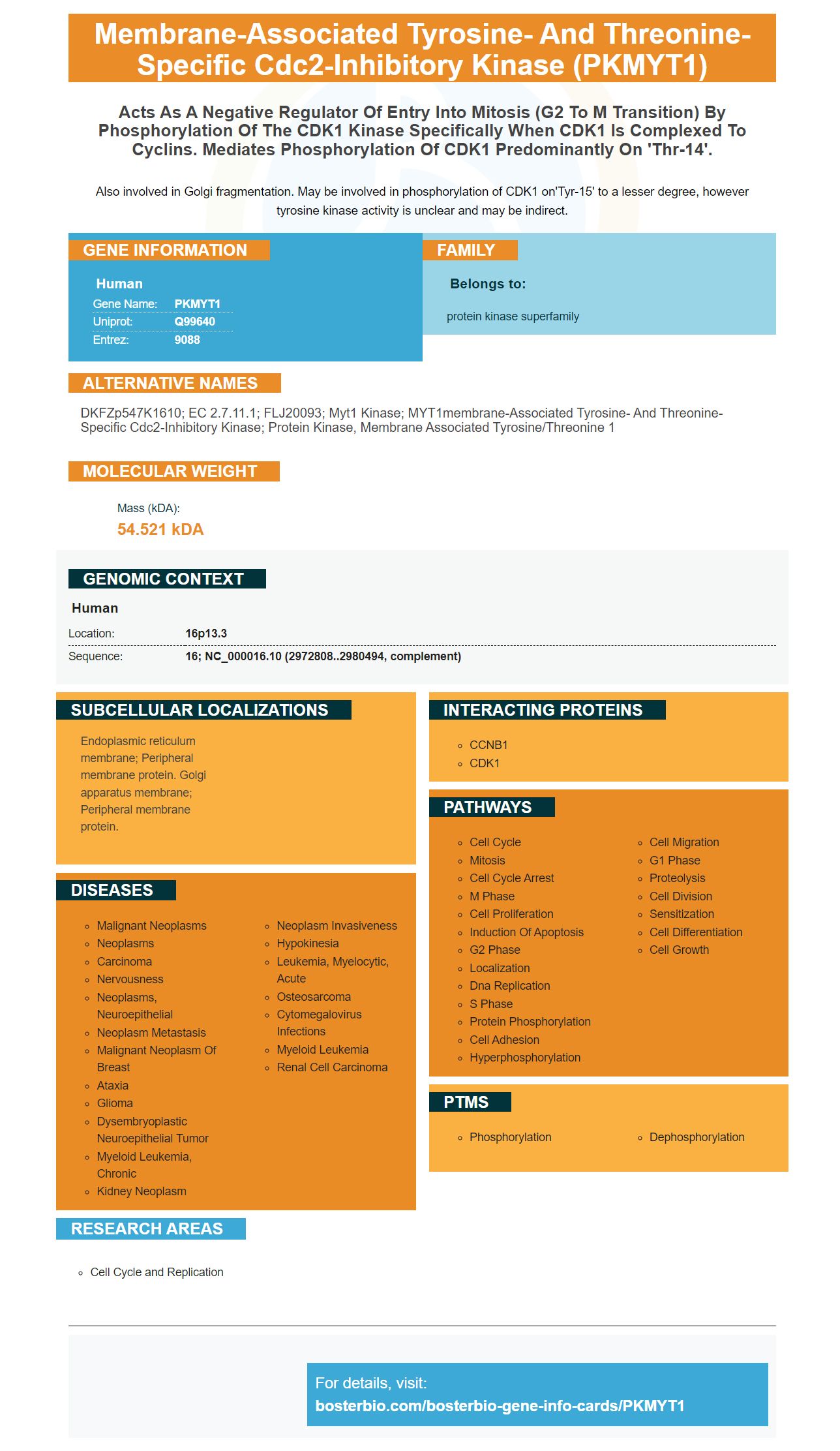 Facts about Membrane-associated tyrosine- and threonine-specific cdc2-inhibitory kinase.