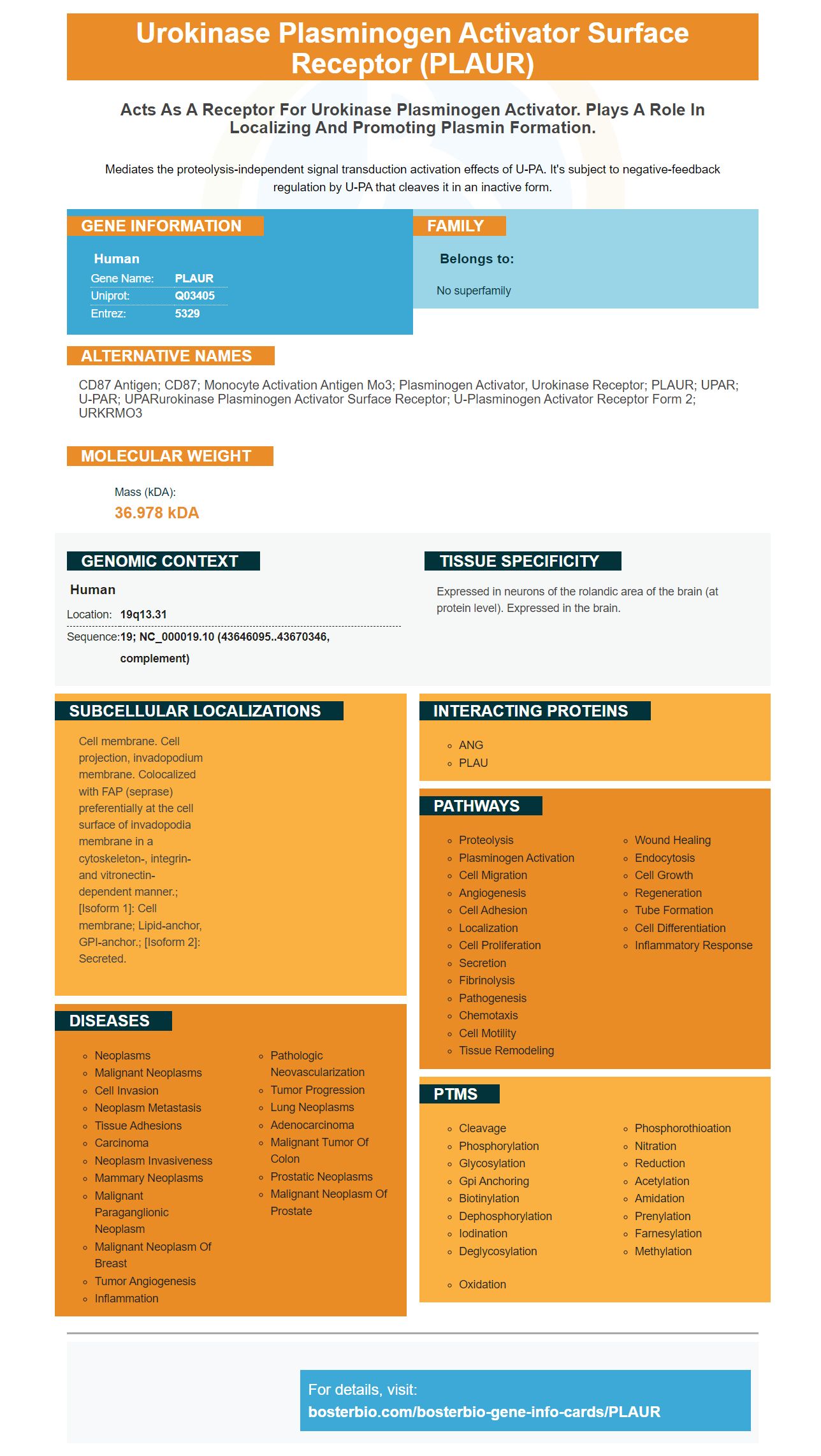 CD87 antigen; CD87; Monocyte activation antigen Mo3; plasminogen activator, urokinase receptor; PLAUR; uPAR; U-PAR; UPARurokinase plasminogen activator surface receptor; u-plasminogen activator receptor form 2; URKRMO3