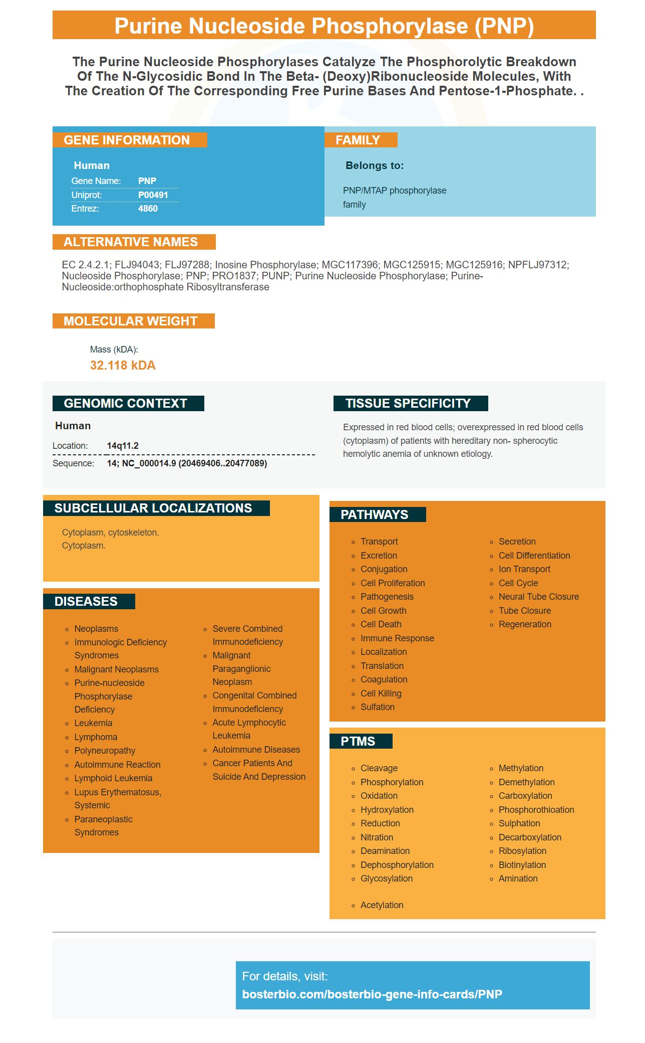 EC 2.4.2.1; FLJ94043; FLJ97288; Inosine phosphorylase; MGC117396; MGC125915; MGC125916; NPFLJ97312; nucleoside phosphorylase; PNP; PRO1837; PUNP; purine nucleoside phosphorylase; purine-nucleoside:orthophosphate ribosyltransferase