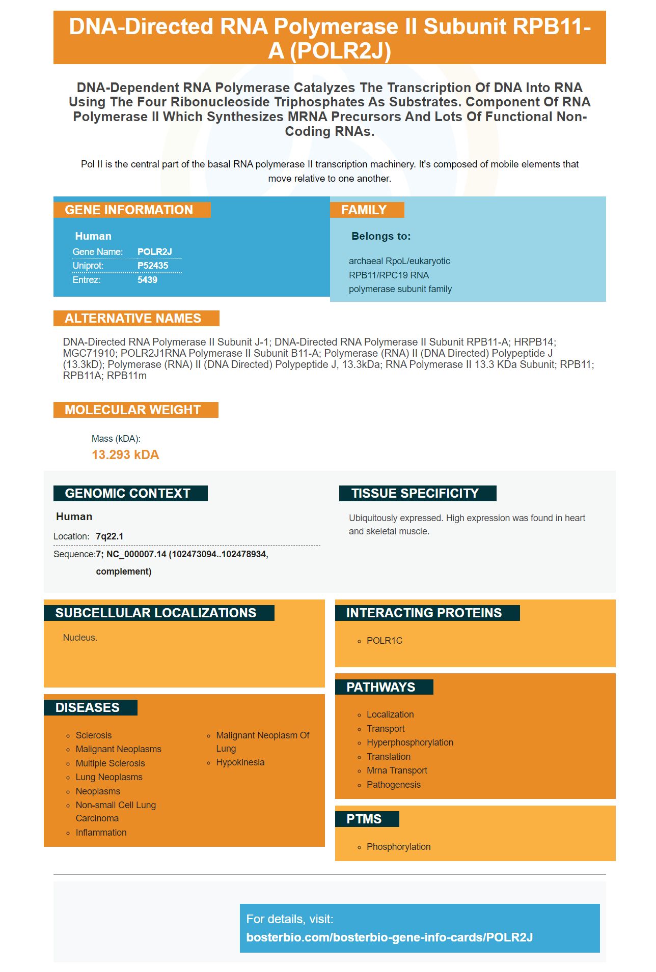 DNA-directed RNA polymerase II subunit J-1; DNA-directed RNA polymerase II subunit RPB11-a; hRPB14; MGC71910; POLR2J1RNA polymerase II subunit B11-a; polymerase (RNA) II (DNA directed) polypeptide J (13.3kD); polymerase (RNA) II (DNA directed) polypeptide J, 13.3kDa; RNA polymerase II 13.3 kDa subunit; RPB11; RPB11A; RPB11m