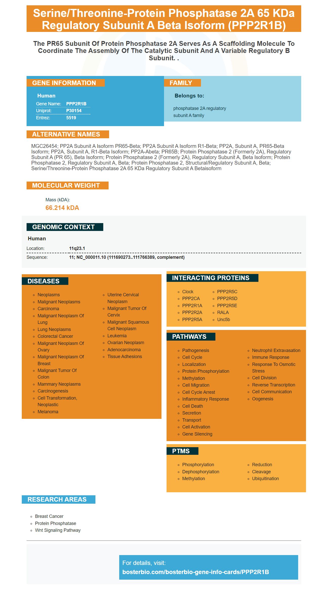 Facts about Serine/threonine-protein phosphatase 2A 65 kDa regulatory subunit A beta isoform.