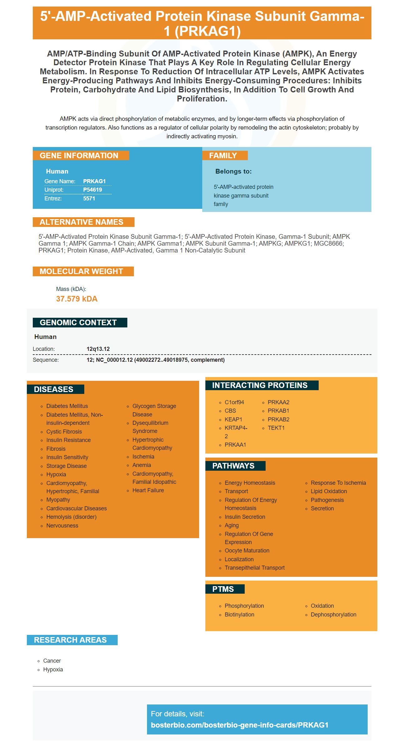 5'-AMP-activated protein kinase subunit gamma-1; 5'-AMP-activated protein kinase, gamma-1 subunit; AMPK gamma 1; AMPK gamma-1 chain; AMPK gamma1; AMPK subunit gamma-1; AMPKG; AMPKG1; MGC8666; PRKAG1; protein kinase, AMP-activated, gamma 1 non-catalytic subunit