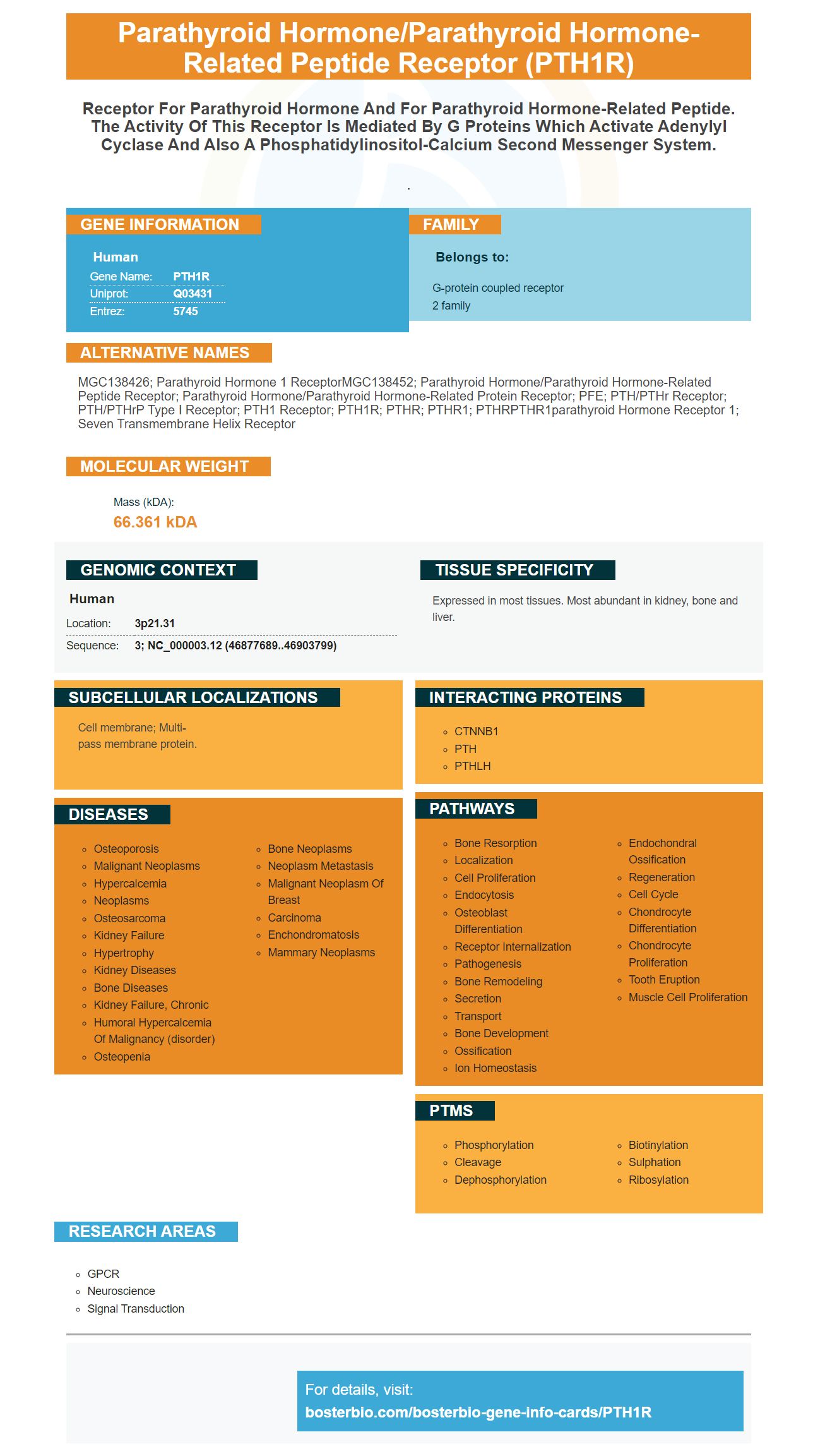 MGC138426; parathyroid hormone 1 receptorMGC138452; parathyroid hormone/parathyroid hormone-related peptide receptor; parathyroid hormone/parathyroid hormone-related protein receptor; PFE; PTH/PTHr receptor; PTH/PTHrP type I receptor; PTH1 receptor; PTH1R; PTHR; PTHR1; PTHRPTHR1parathyroid hormone receptor 1; seven transmembrane helix receptor