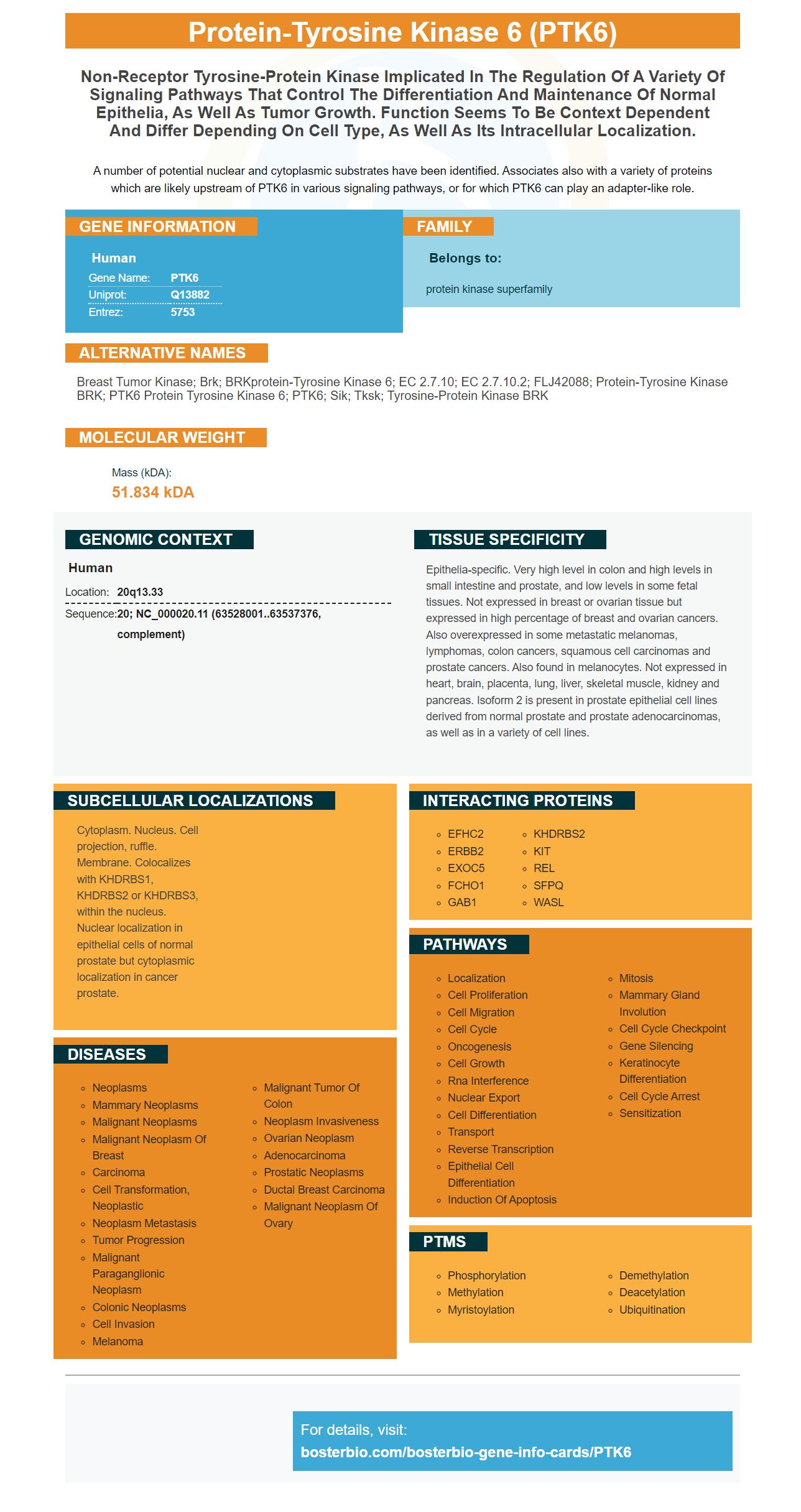 Breast tumor kinase; Brk; BRKprotein-tyrosine kinase 6; EC 2.7.10; EC 2.7.10.2; FLJ42088; protein-tyrosine kinase BRK; PTK6 protein tyrosine kinase 6; PTK6; Sik; Tksk; Tyrosine-protein kinase BRK