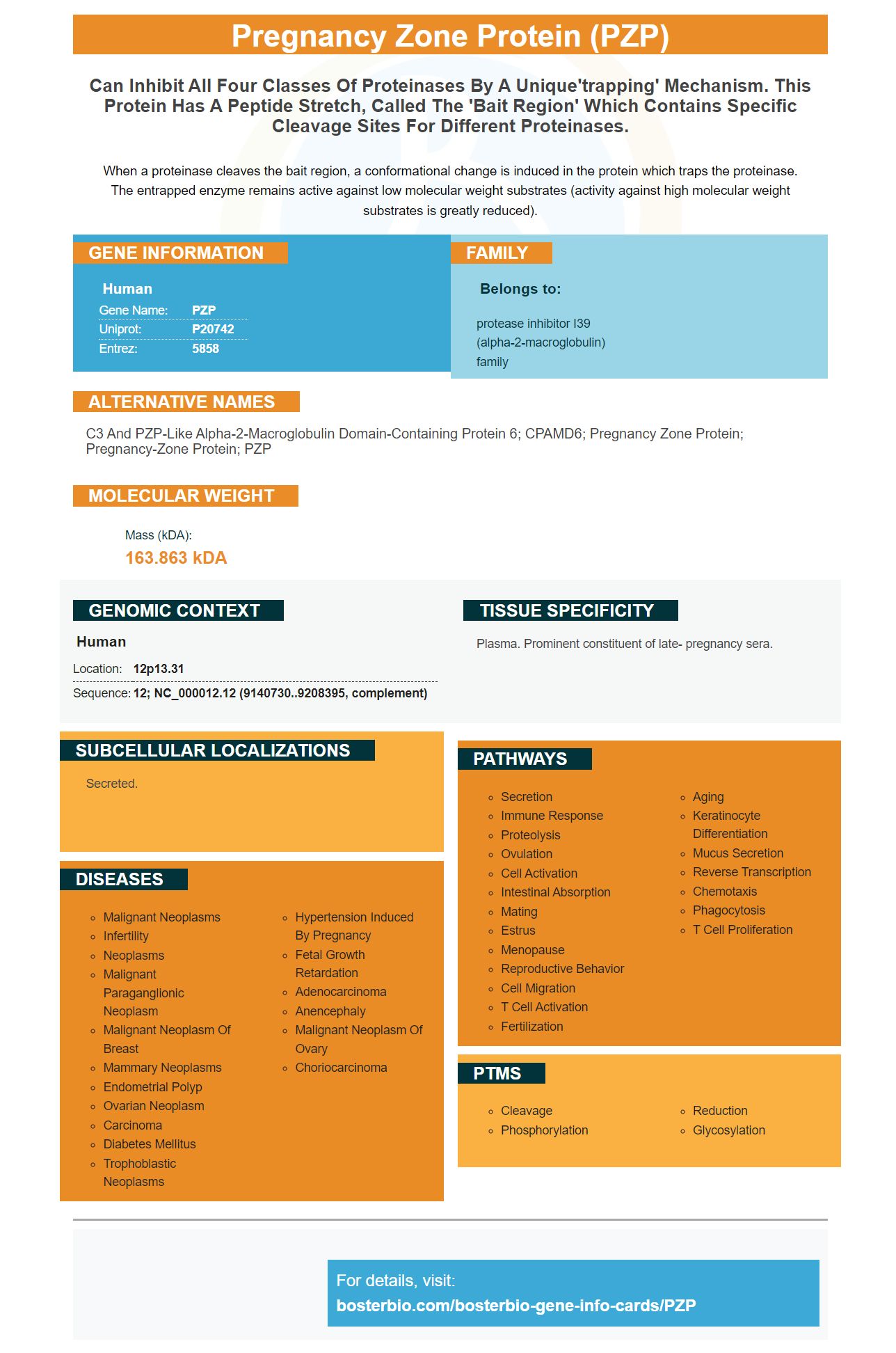 PMID: 1989698 by Devriendt K., et al. Primary structure of pregnancy zone protein. Molecular cloning of a full-length PZP cDNA clone by the polymerase chain reaction.