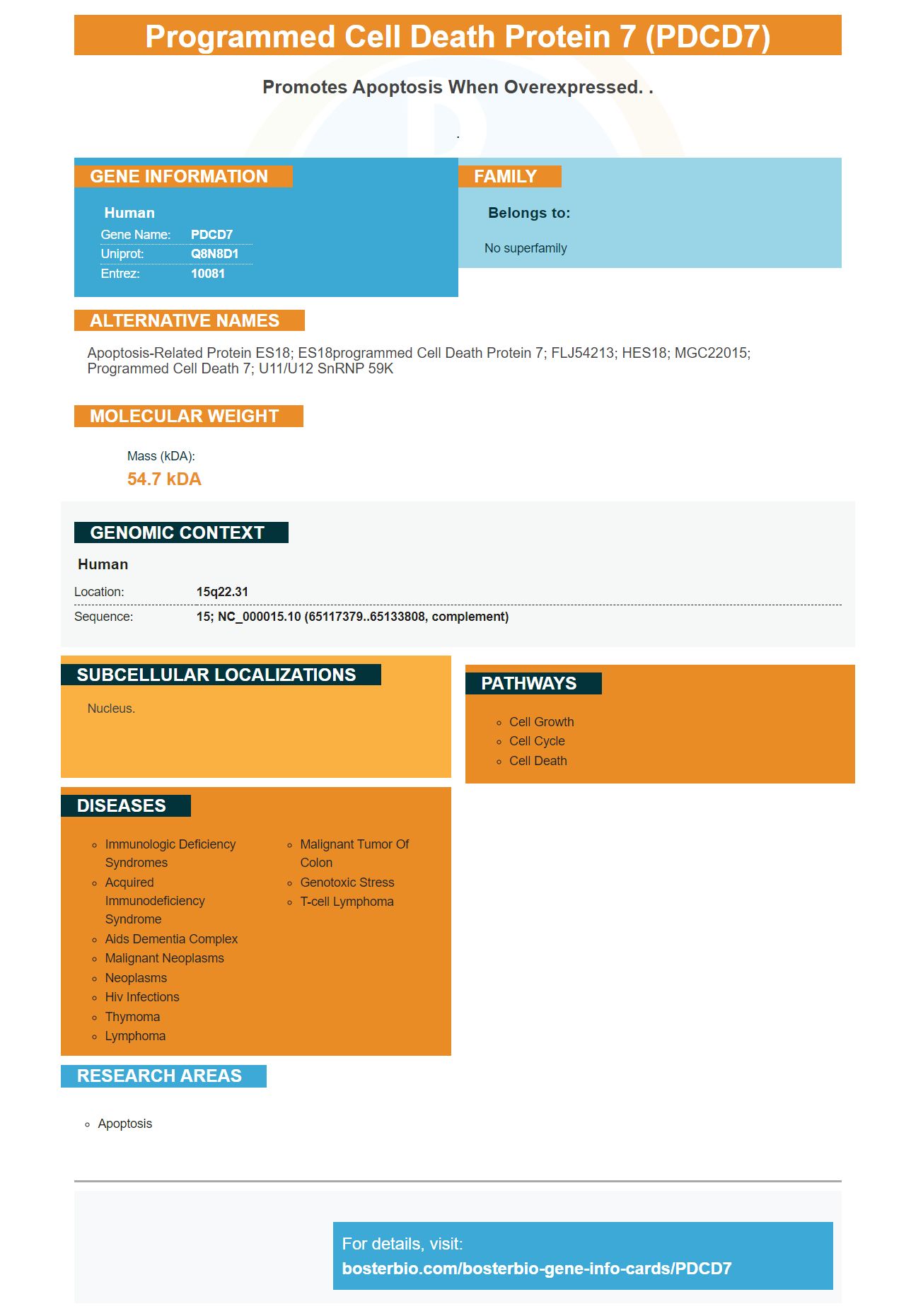 apoptosis-related protein ES18; ES18programmed cell death protein 7; FLJ54213; HES18; MGC22015; programmed cell death 7; U11/U12 snRNP 59K