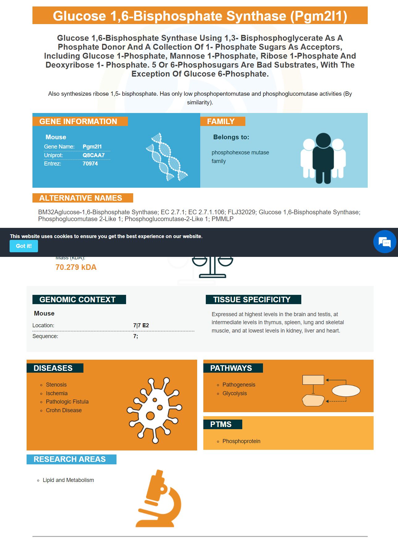 PMID: 17804405 by Maliekal P., et al. Molecular identification of mammalian phosphopentomutase and glucose- 1,6-bisphosphate synthase, two members of the alpha-D- phosphohexomutase family.
