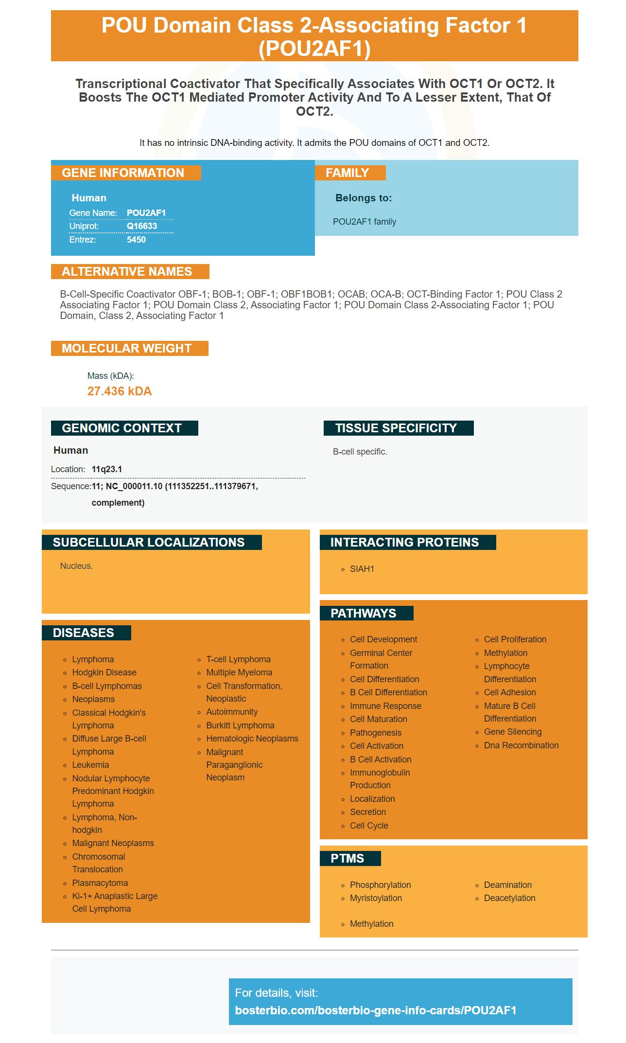B-cell-specific coactivator OBF-1; BOB-1; OBF-1; OBF1BOB1; OCAB; OCA-B; OCT-binding factor 1; POU class 2 associating factor 1; POU domain class 2, associating factor 1; POU domain class 2-associating factor 1; POU domain, class 2, associating factor 1