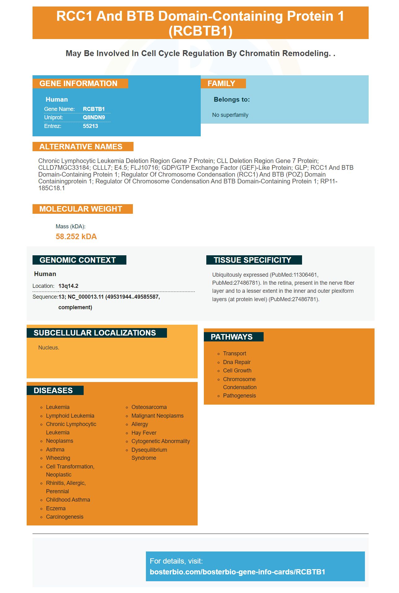 Facts about RCC1 and BTB domain-containing protein 1.