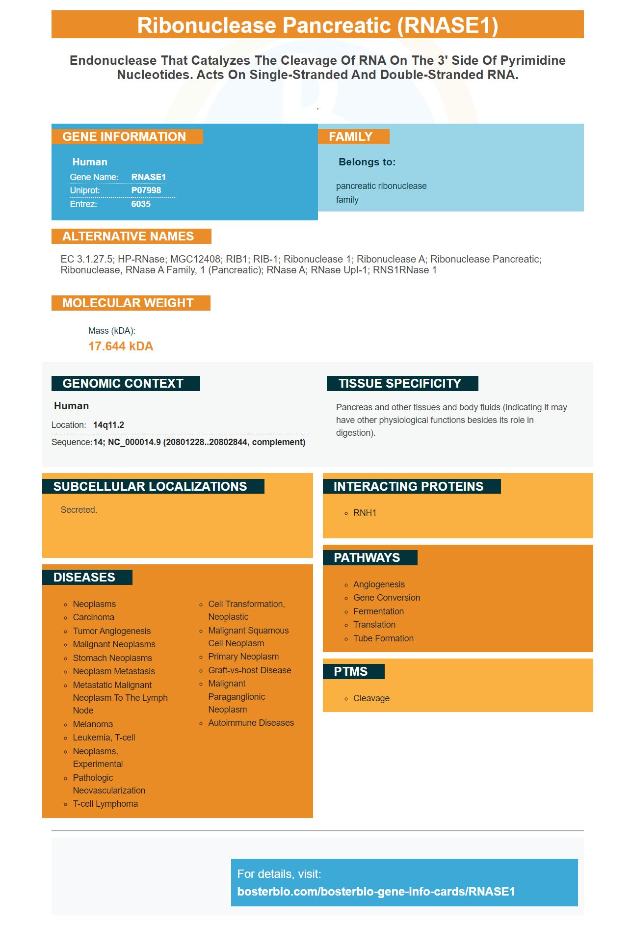 EC 3.1.27.5; HP-RNase; MGC12408; RIB1; RIB-1; Ribonuclease 1; Ribonuclease A; ribonuclease pancreatic; ribonuclease, RNase A family, 1 (pancreatic); RNase A; RNase UpI-1; RNS1RNase 1