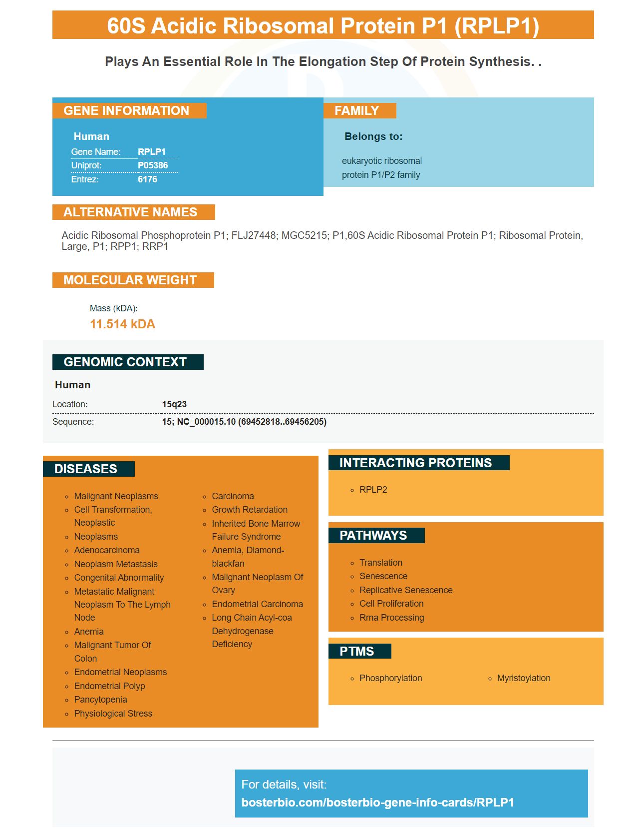 acidic ribosomal phosphoprotein P1; FLJ27448; MGC5215; P1,60S acidic ribosomal protein P1; ribosomal protein, large, P1; RPP1; RRP1