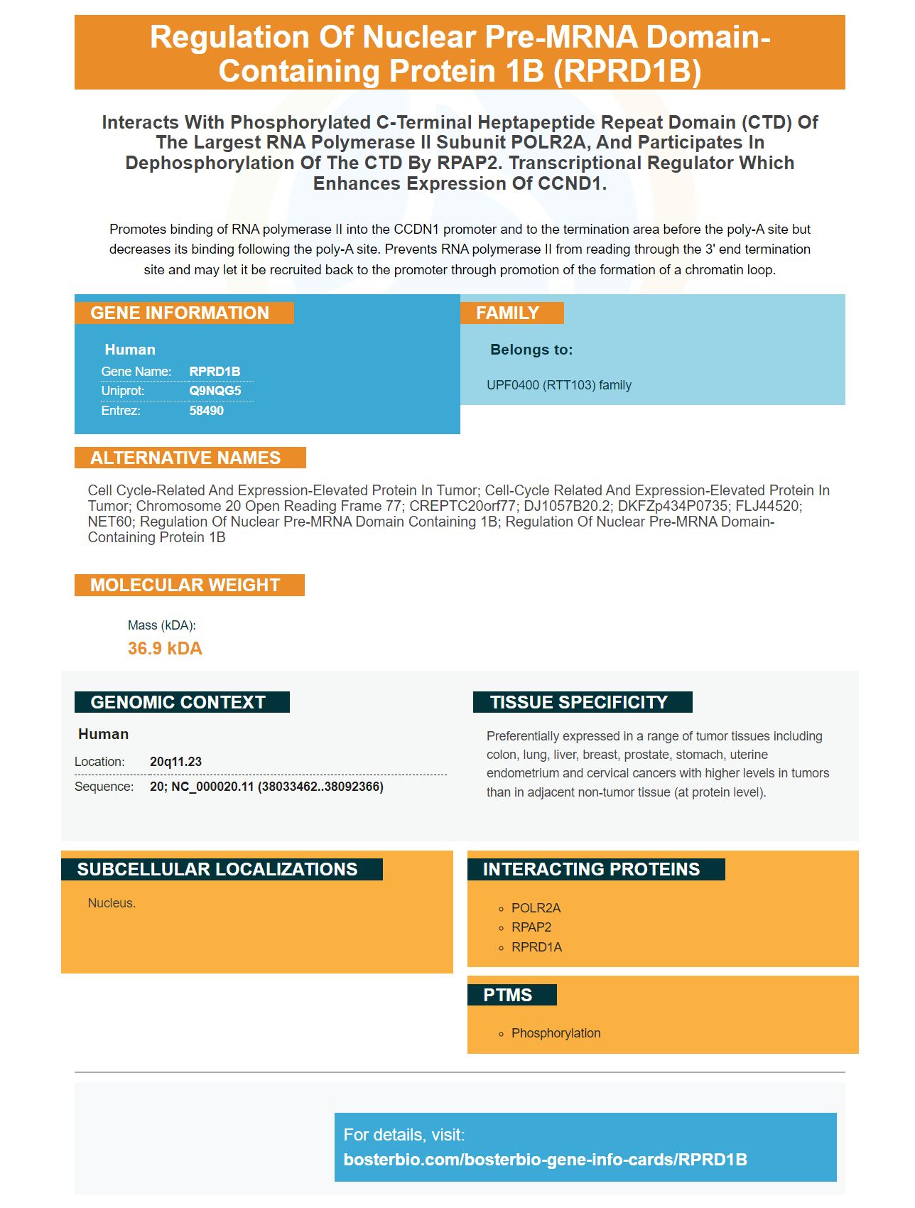 Cell cycle-related and expression-elevated protein in tumor; cell-cycle related and expression-elevated protein in tumor; chromosome 20 open reading frame 77; CREPTC20orf77; dJ1057B20.2; DKFZp434P0735; FLJ44520; NET60; regulation of nuclear pre-mRNA domain containing 1B; regulation of nuclear pre-mRNA domain-containing protein 1B