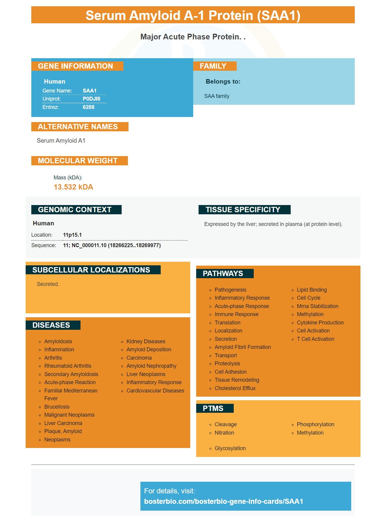 PMID: 3839415 by Sipe J.D., et al. Human serum amyloid A (SAA): biosynthesis and postsynthetic processing of preSAA and structural variants defined by complementary DNA.