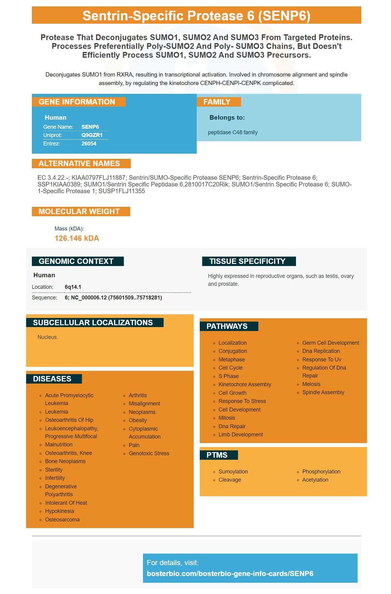 EC 3.4.22.-; KIAA0797FLJ11887; Sentrin/SUMO-specific protease SENP6; sentrin-specific protease 6; SSP1KIAA0389; SUMO1/sentrin specific peptidase 6,2810017C20Rik; SUMO1/sentrin specific protease 6; SUMO-1-specific protease 1; SUSP1FLJ11355