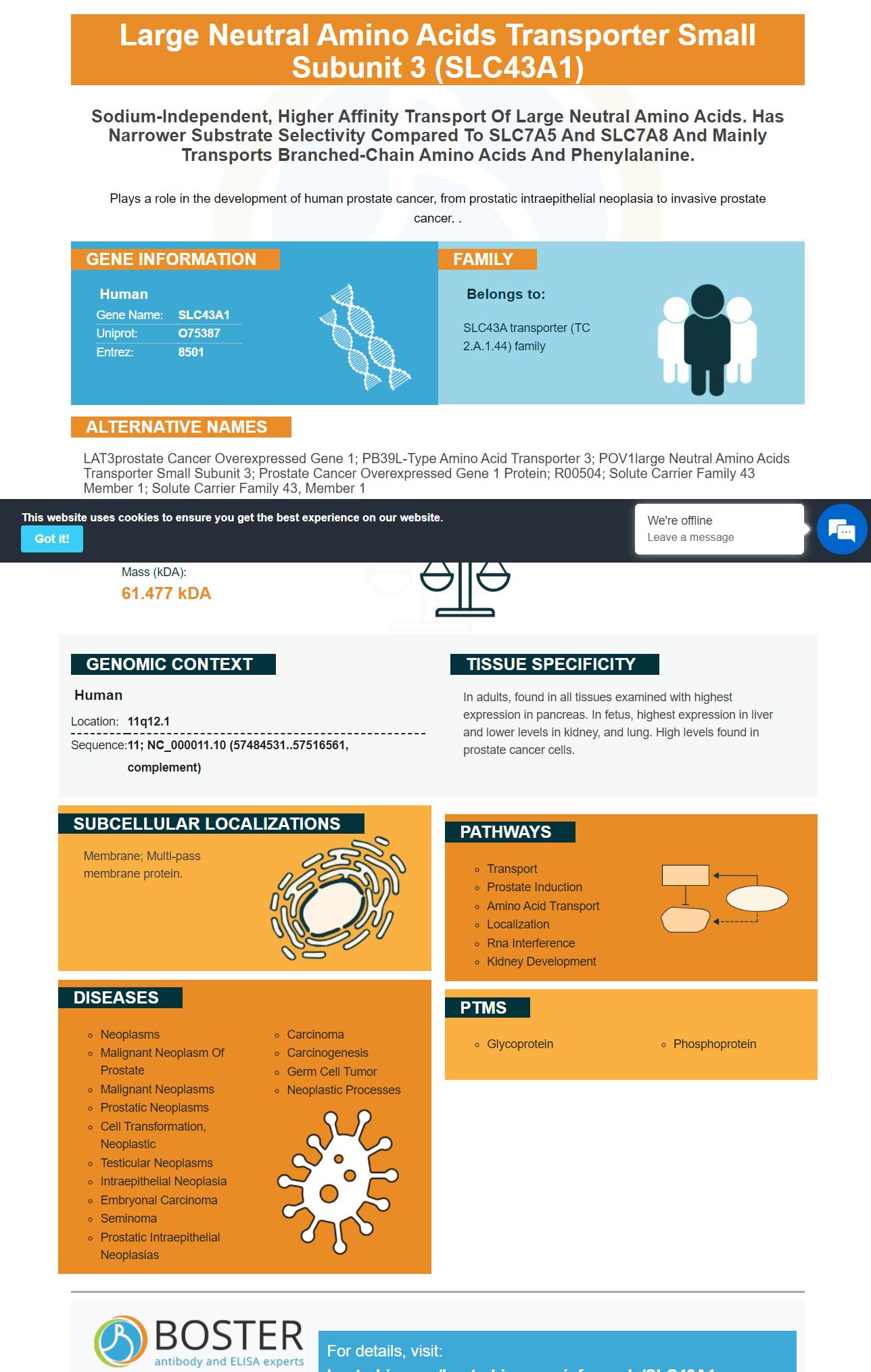 LAT3prostate cancer overexpressed gene 1; PB39L-type amino acid transporter 3; POV1large neutral amino acids transporter small subunit 3; Prostate cancer overexpressed gene 1 protein; R00504; Solute carrier family 43 member 1; solute carrier family 43, member 1