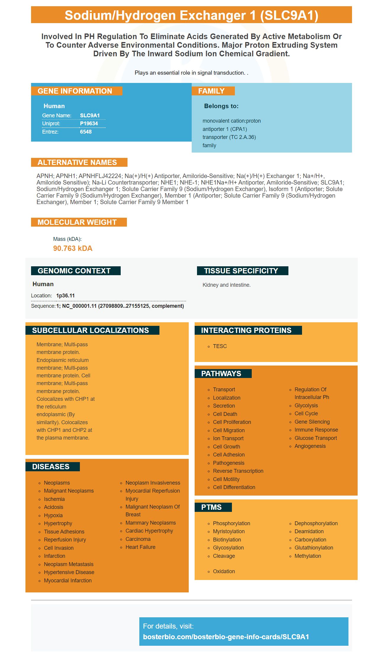 APNH; APNH1; APNHFLJ42224; Na(+)/H(+) antiporter, amiloride-sensitive; Na(+)/H(+) exchanger 1; Na+/H+, amiloride sensitive); Na-Li countertransporter; NHE1; NHE-1; NHE1Na+/H+ antiporter, amiloride-sensitive; SLC9A1; sodium/hydrogen exchanger 1; solute carrier family 9 (sodium/hydrogen exchanger), isoform 1 (antiporter; solute carrier family 9 (sodium/hydrogen exchanger), member 1 (antiporter; solute carrier family 9 (sodium/hydrogen exchanger), member 1; Solute carrier family 9 member 1