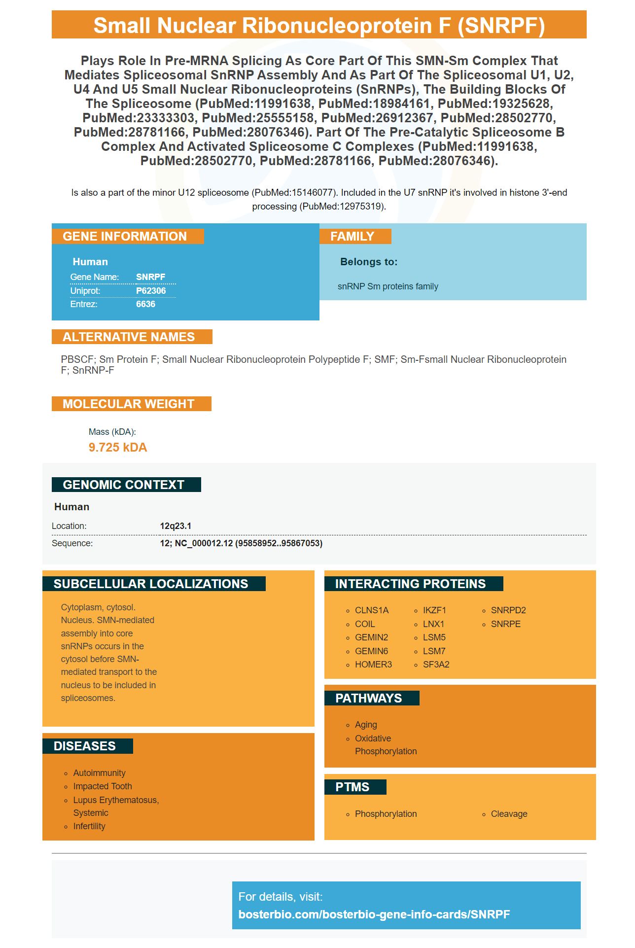 PBSCF; Sm protein F; small nuclear ribonucleoprotein polypeptide F; SMF; Sm-Fsmall nuclear ribonucleoprotein F; snRNP-F