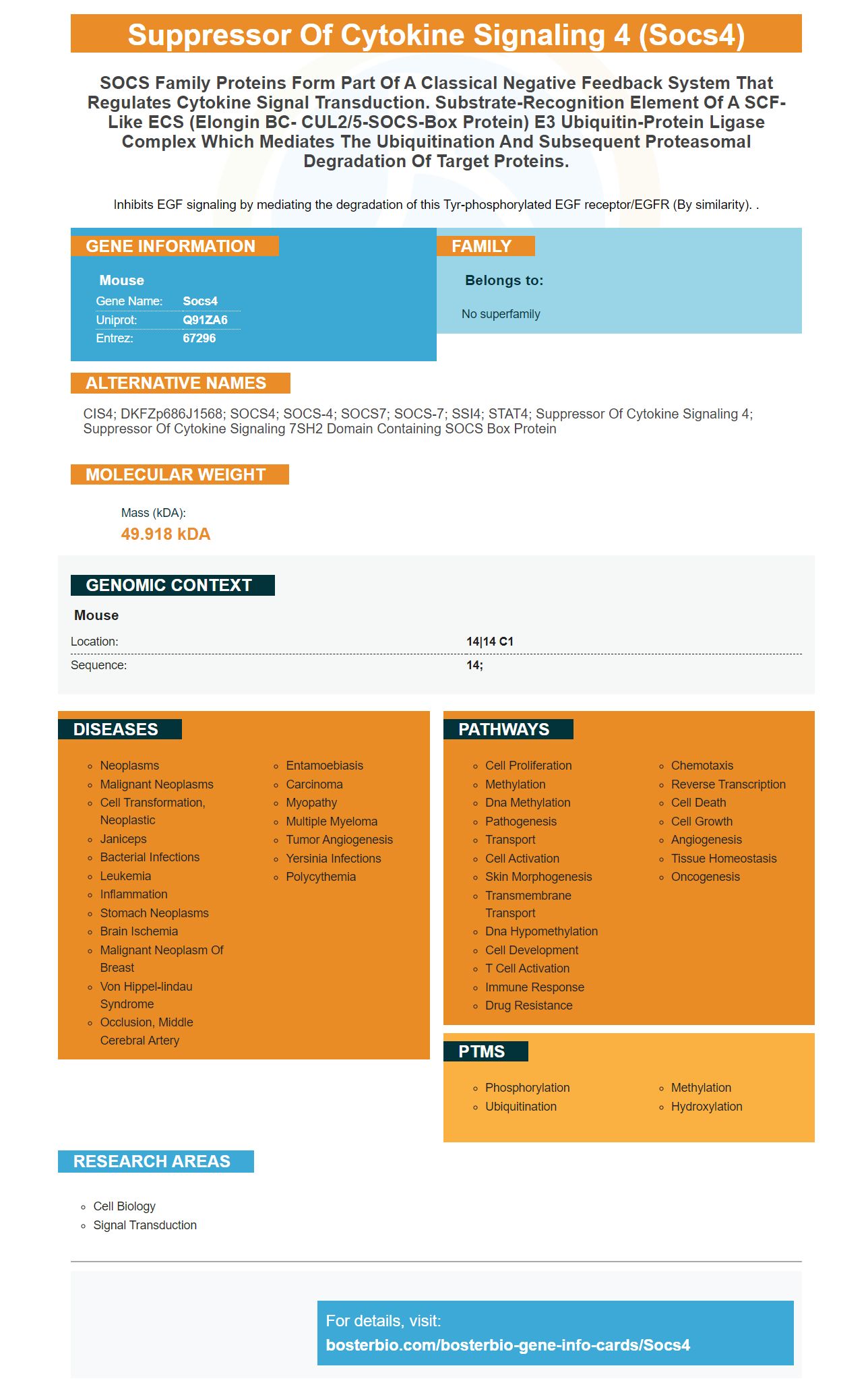 CIS4; DKFZp686J1568; SOCS4; SOCS-4; SOCS7; SOCS-7; SSI4; STAT4; suppressor of cytokine signaling 4; Suppressor of cytokine signaling 7SH2 domain containing SOCS box protein