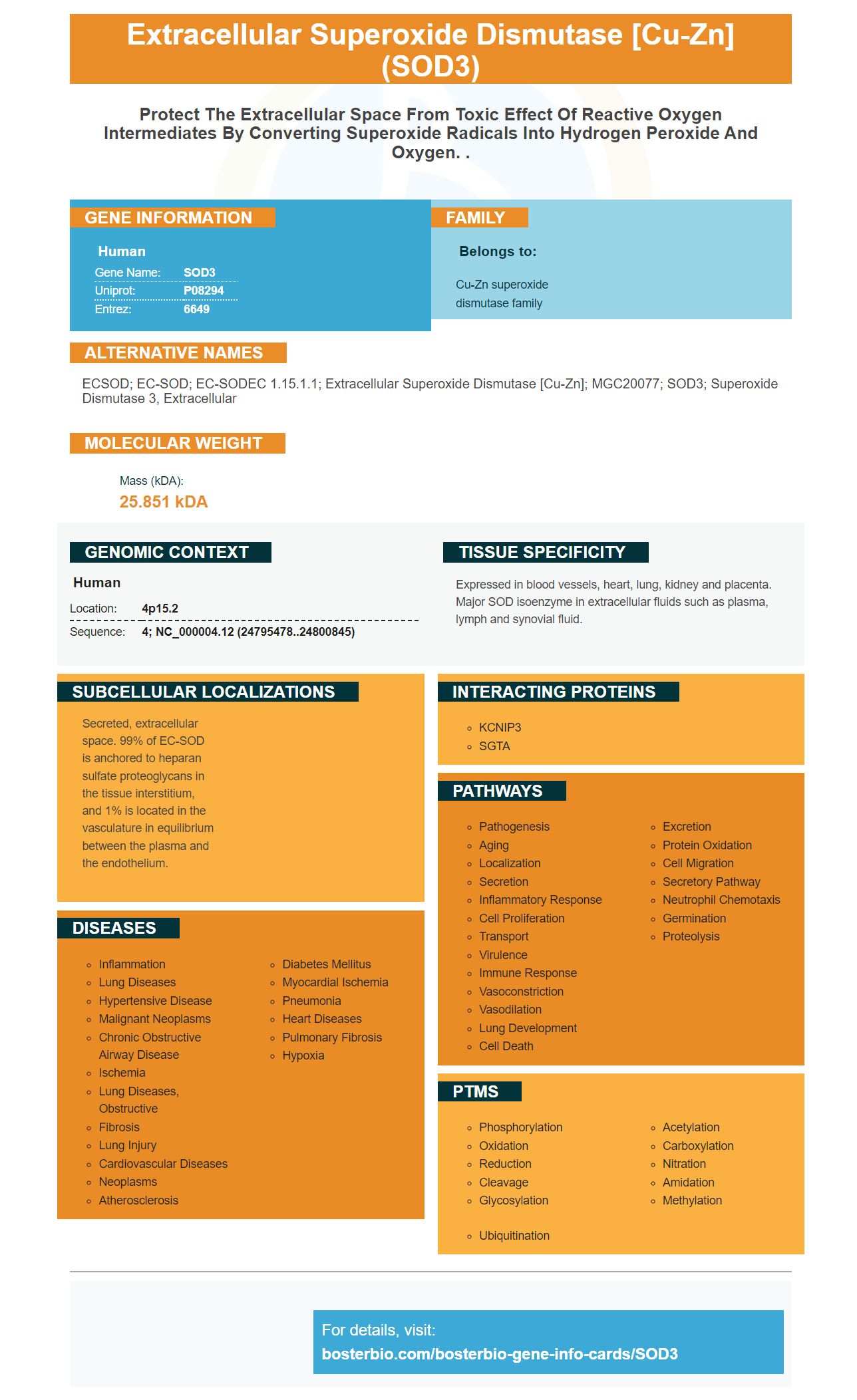 ECSOD; EC-SOD; EC-SODEC 1.15.1.1; extracellular superoxide dismutase [Cu-Zn]; MGC20077; SOD3; superoxide dismutase 3, extracellular