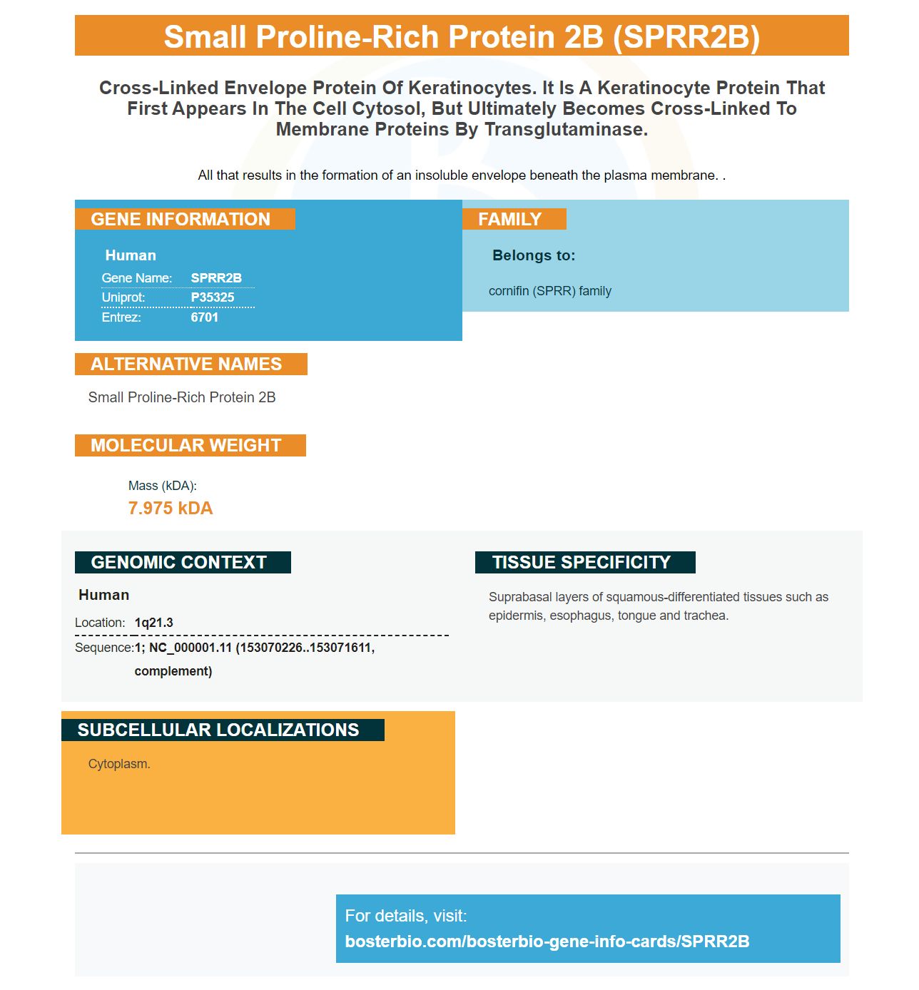 PMID: 8325635 by Gibbs S., et al. Molecular characterization and evolution of the SPRR family of keratinocyte differentiation markers encoding small proline-rich proteins.