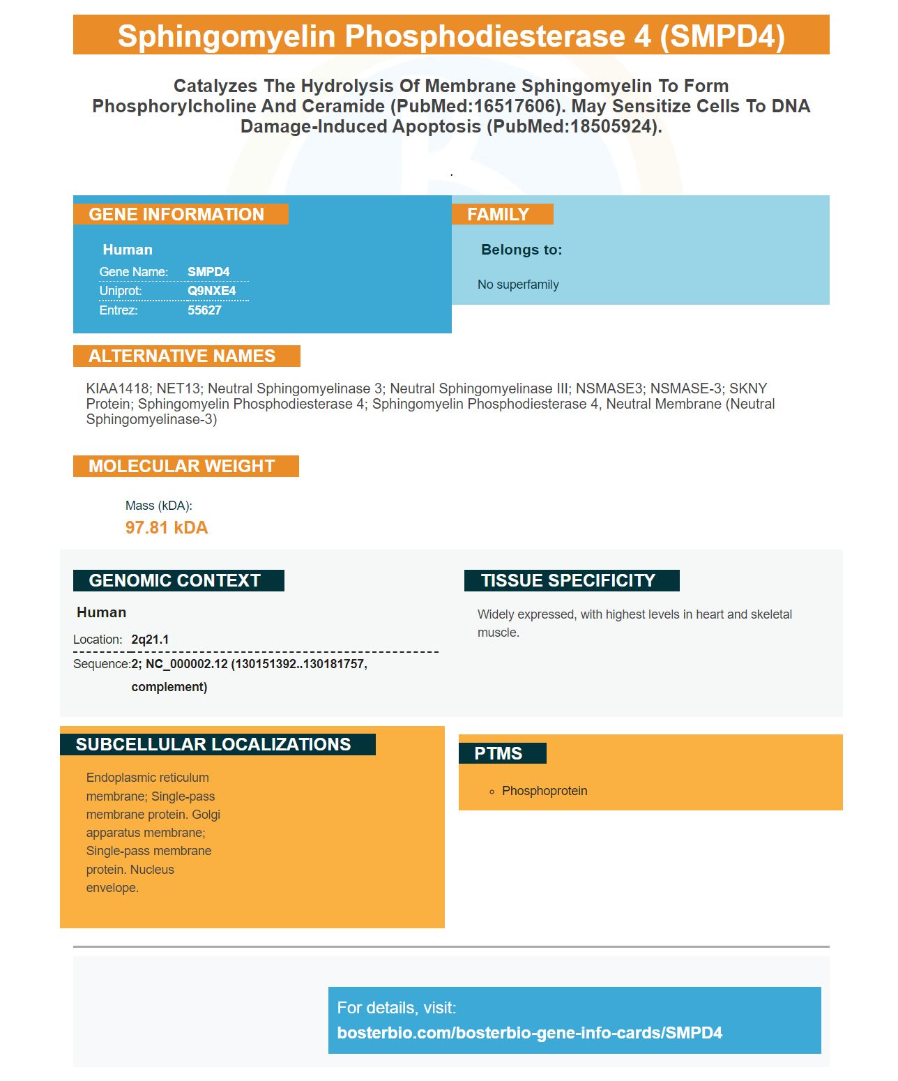 KIAA1418; NET13; Neutral Sphingomyelinase 3; Neutral Sphingomyelinase III; NSMASE3; NSMASE-3; SKNY Protein; Sphingomyelin Phosphodiesterase 4; Sphingomyelin Phosphodiesterase 4, Neutral Membrane (Neutral Sphingomyelinase-3)