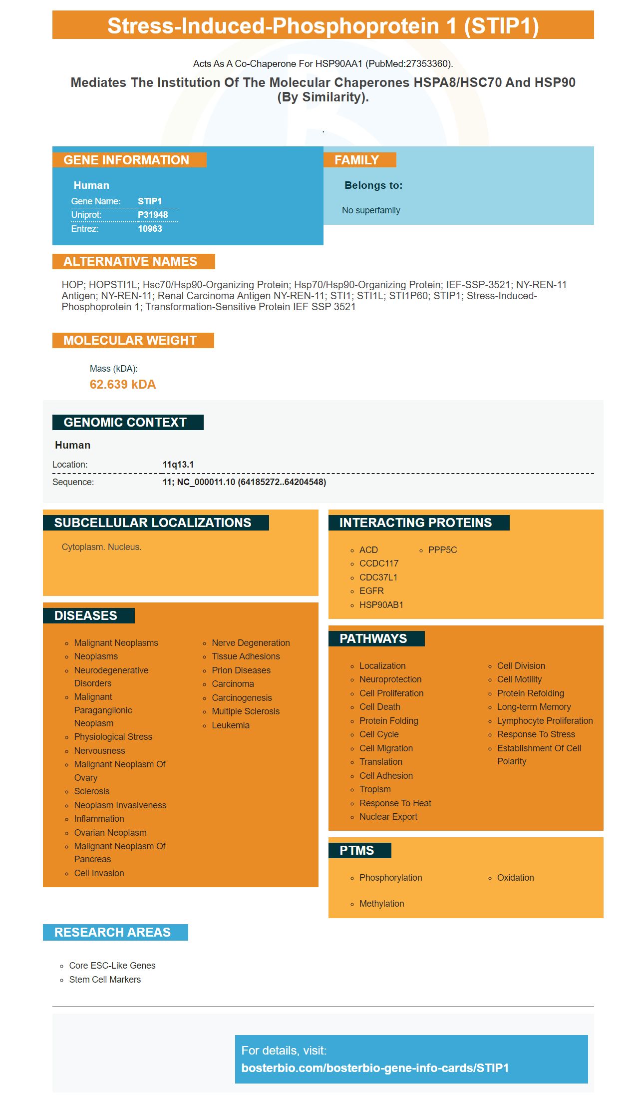 HOP; HOPSTI1L; Hsc70/Hsp90-organizing protein; Hsp70/Hsp90-organizing protein; IEF-SSP-3521; NY-REN-11 antigen; NY-REN-11; Renal carcinoma antigen NY-REN-11; STI1; STI1L; STI1P60; STIP1; stress-induced-phosphoprotein 1; Transformation-sensitive protein IEF SSP 3521